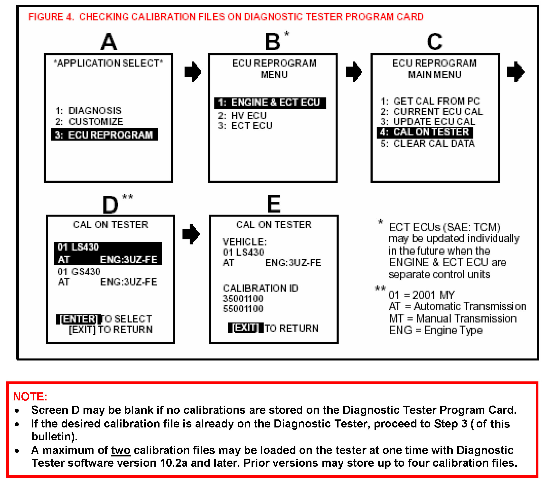 Flash reprogramming allows the ECU software to be updated for changes in vehicle calibrations without removing the ECU from the vehicle. Flash calibration updates for specific vehicle models/ECUs will be released as field fix procedures described in individual service bulletins. This bulletin details the ECU flash reprogramming process and the applications within ETAS and the Lexus Diagnostic Tester used for reprogramming.