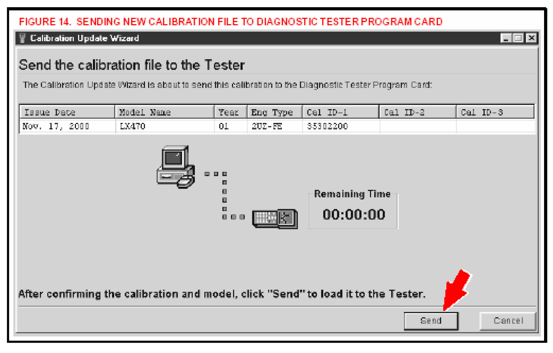 K. Confirm the calibration file to be sent to the Diagnostic Tester Program Card (Figure 14). Click SEND.