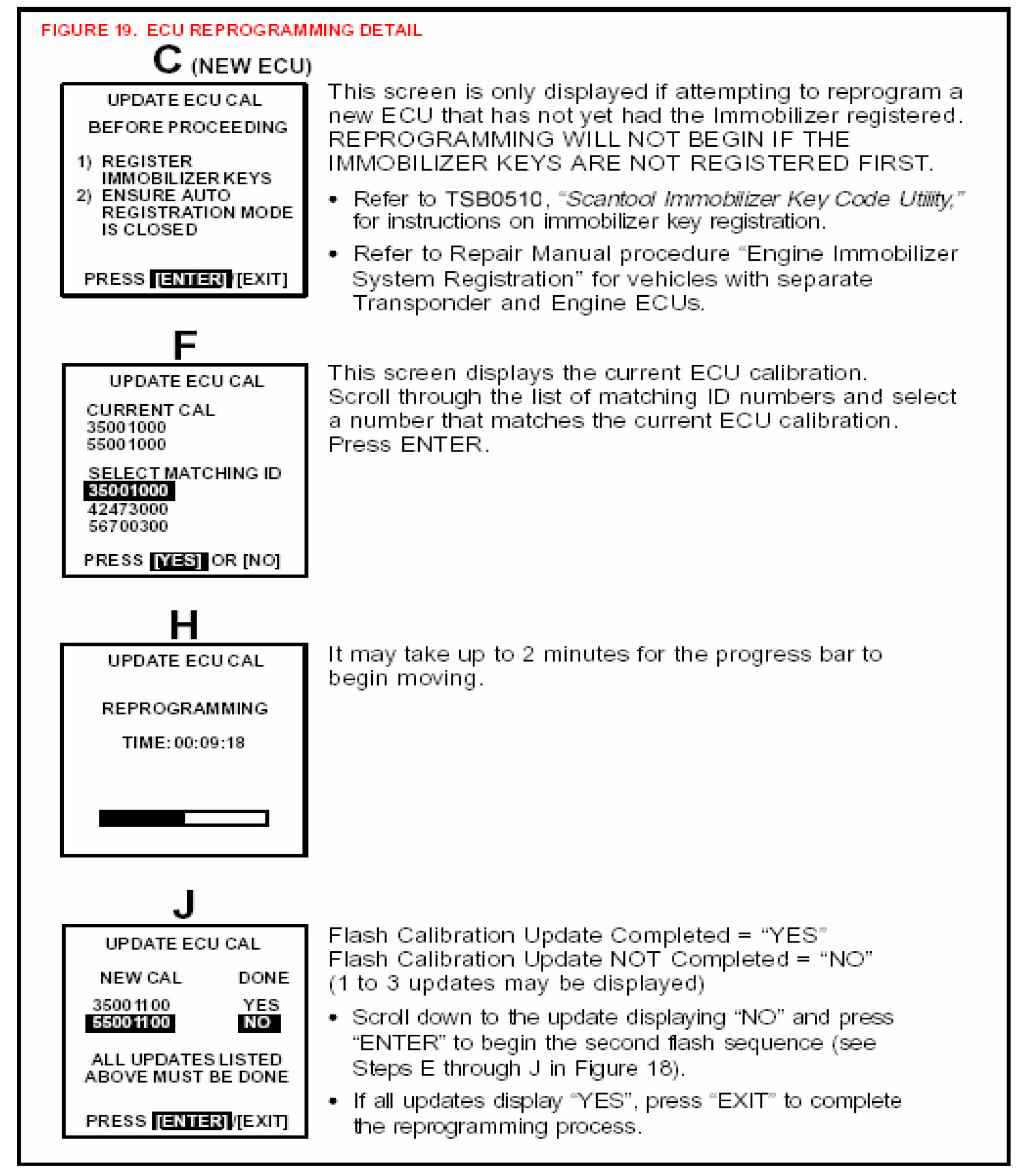 Continue to update the ECU calibration file following the screen flow (Figure 18). Details for selected screens are shown in Figure 19.