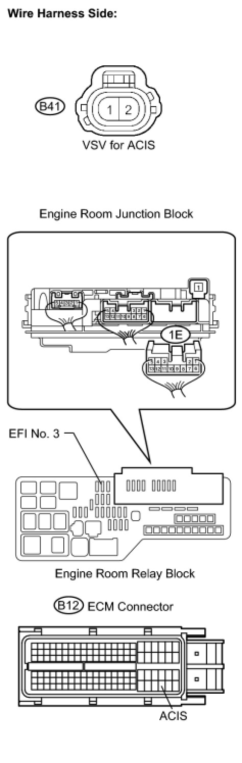 (c) Check the wire harness between the VSV for ACIS connector and EFI relay.