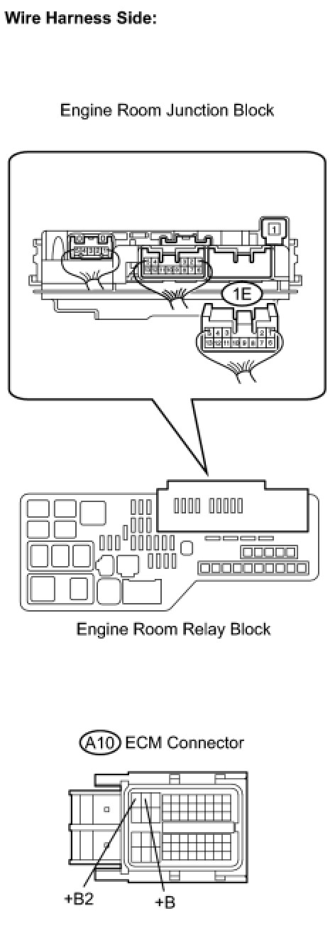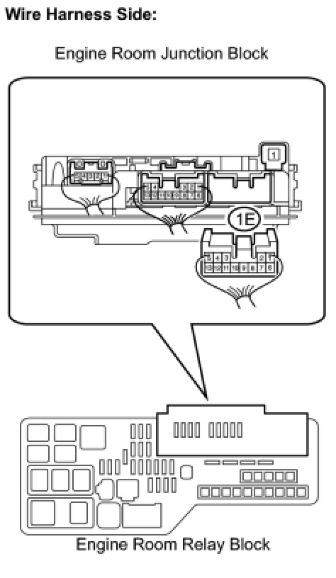 4. CHECK HARNESS AND CONNECTOR (ENGINE ROOM RELAY BLOCK - BATTERY)