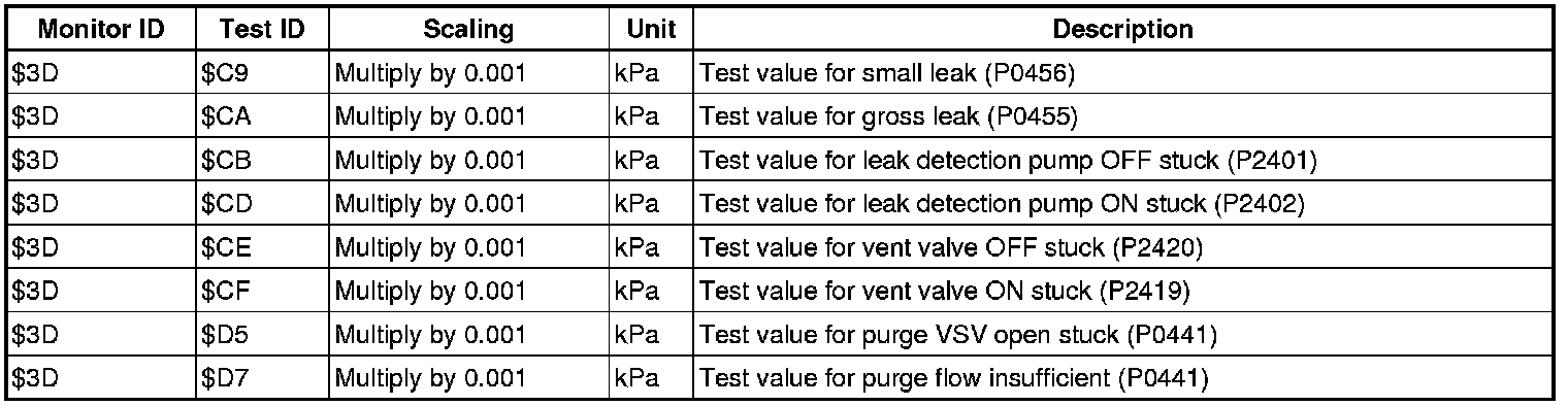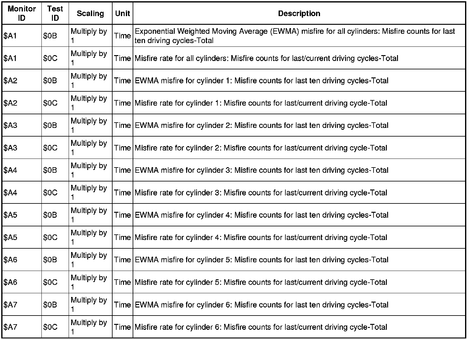 If you use a generic scan tool, multiply the test value by the scaling value listed below.