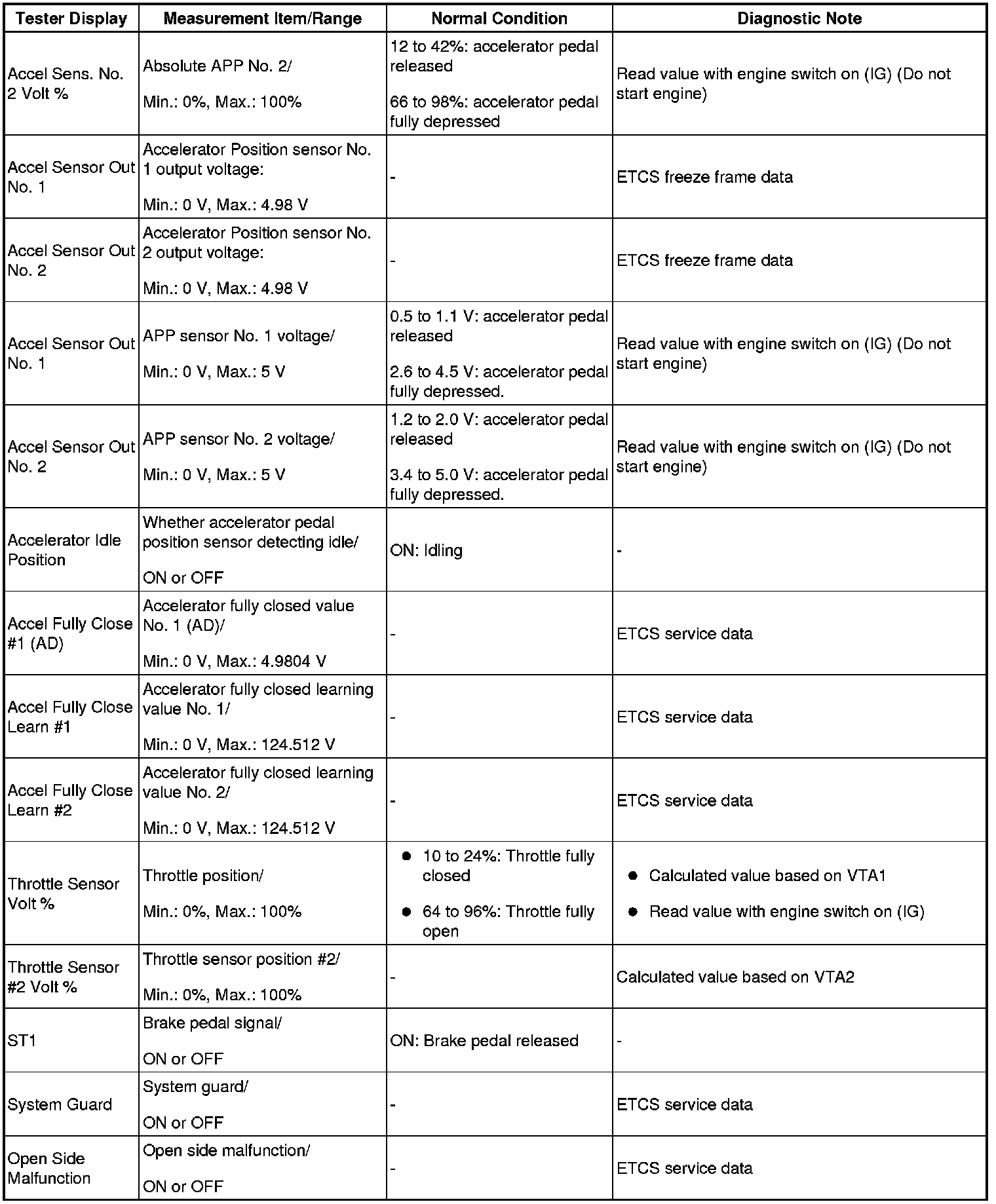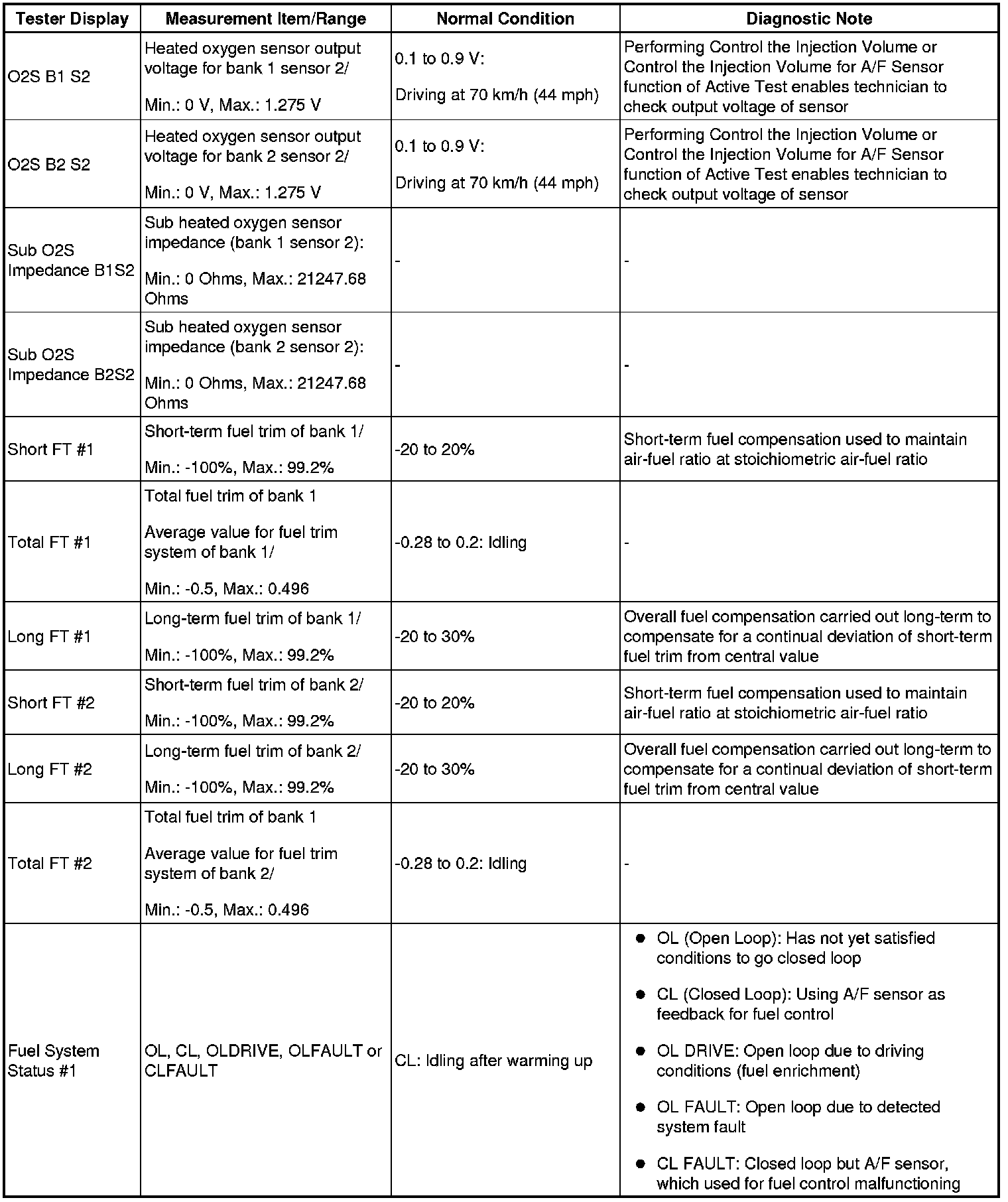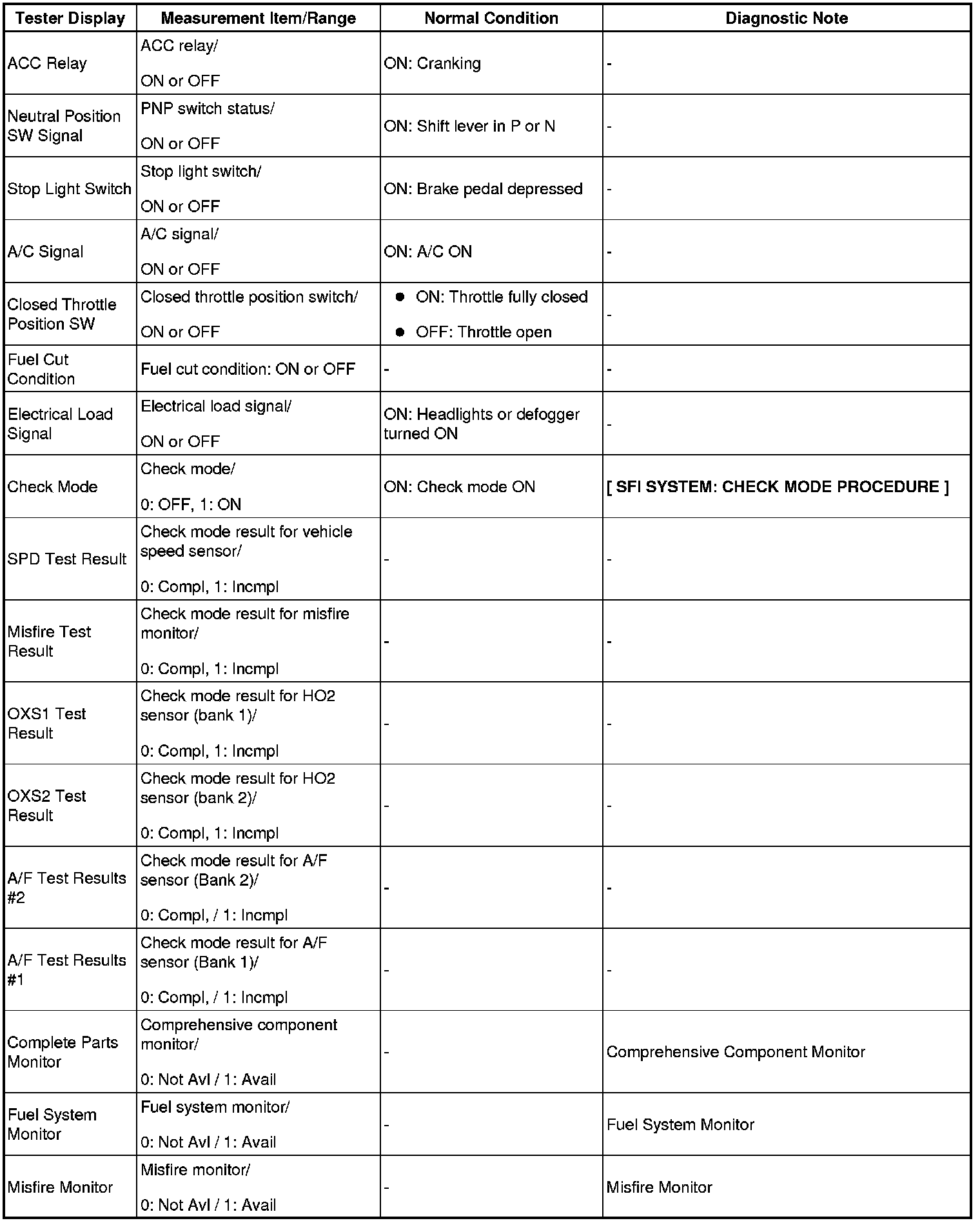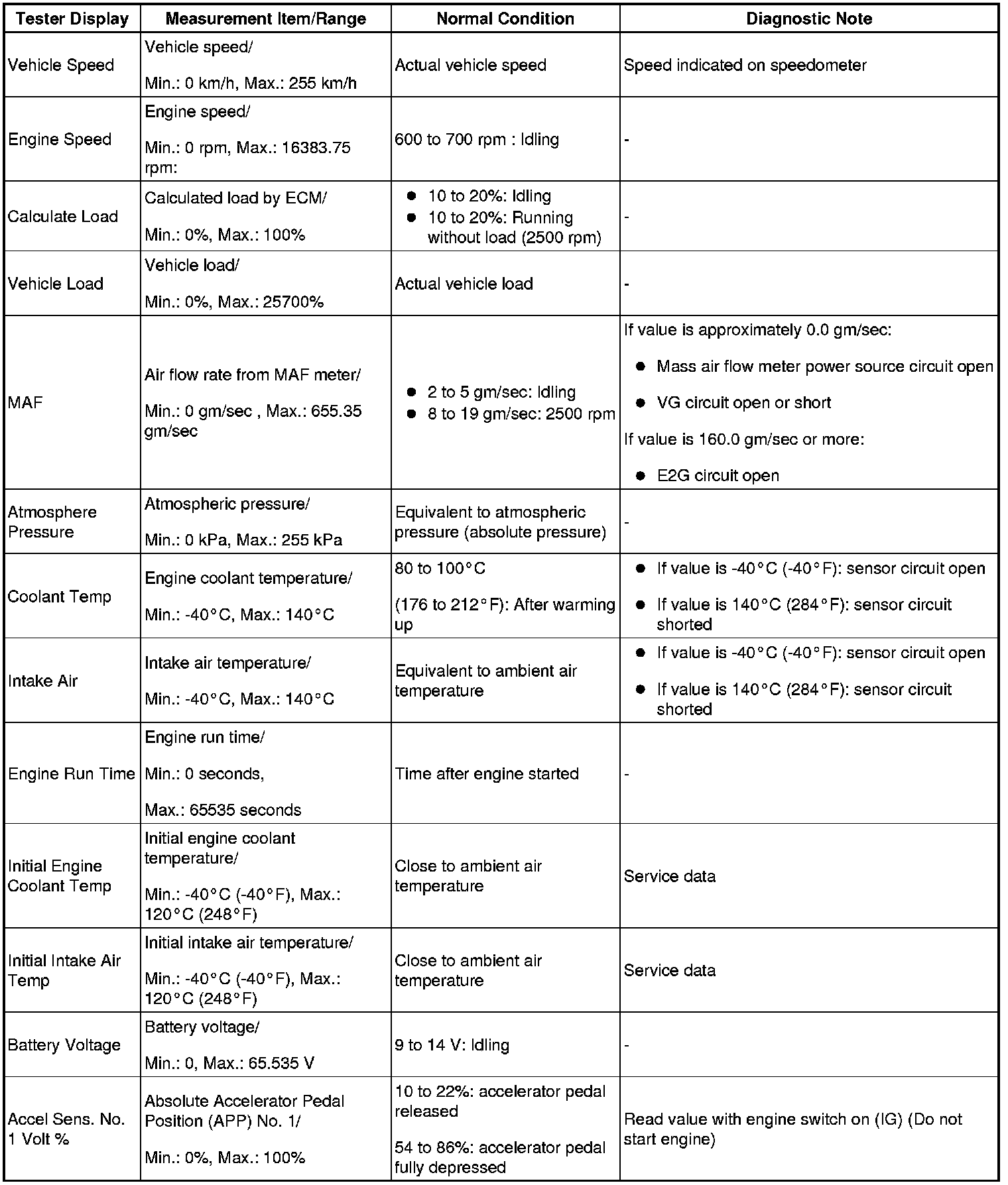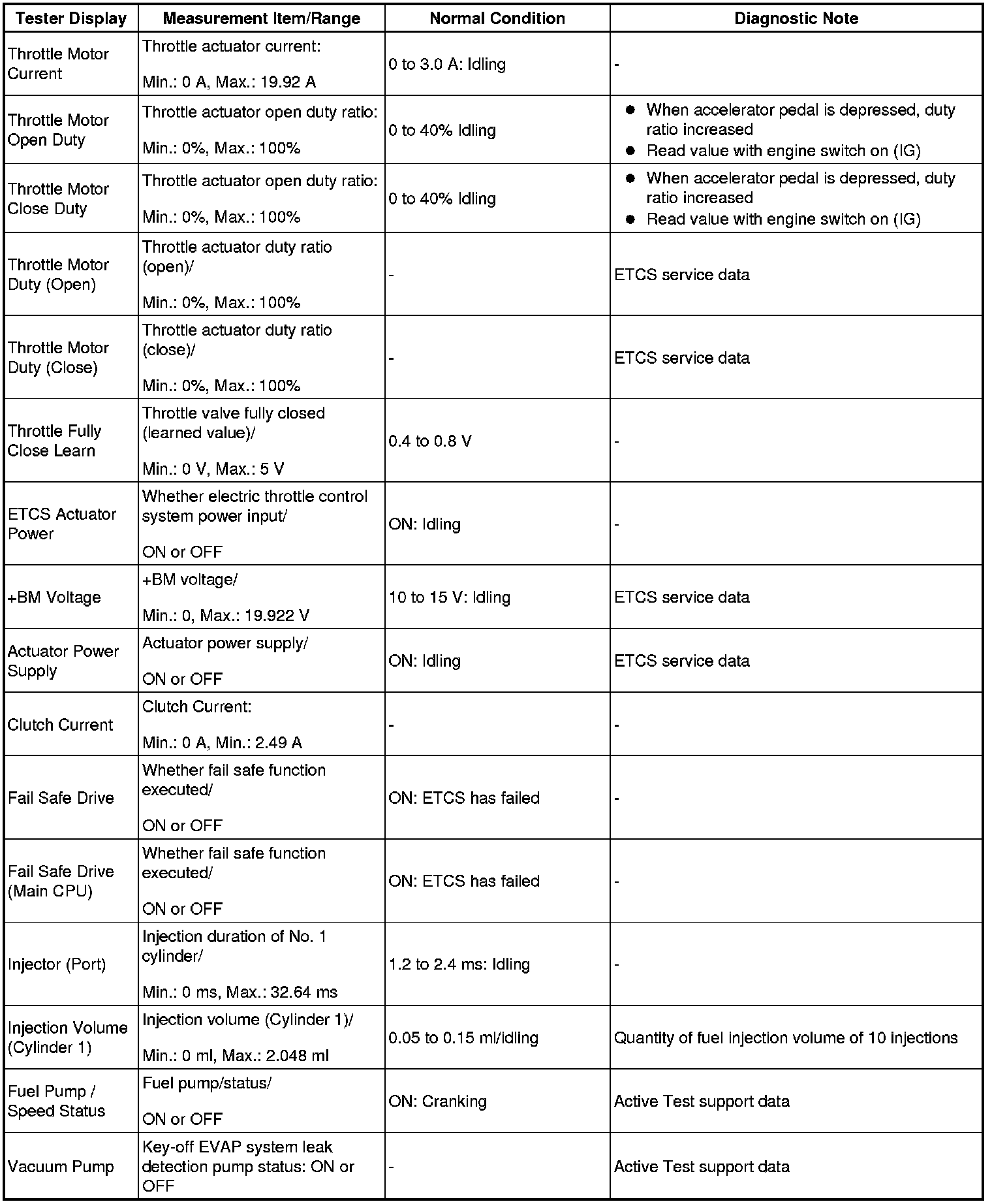 HINT: By reading the Data List displayed on the Techstream, you can check values, including those of the switches, sensors, and actuators, without removing any parts. Reading the Data List as the first step in troubleshooting is one method of shortening diagnostic time.