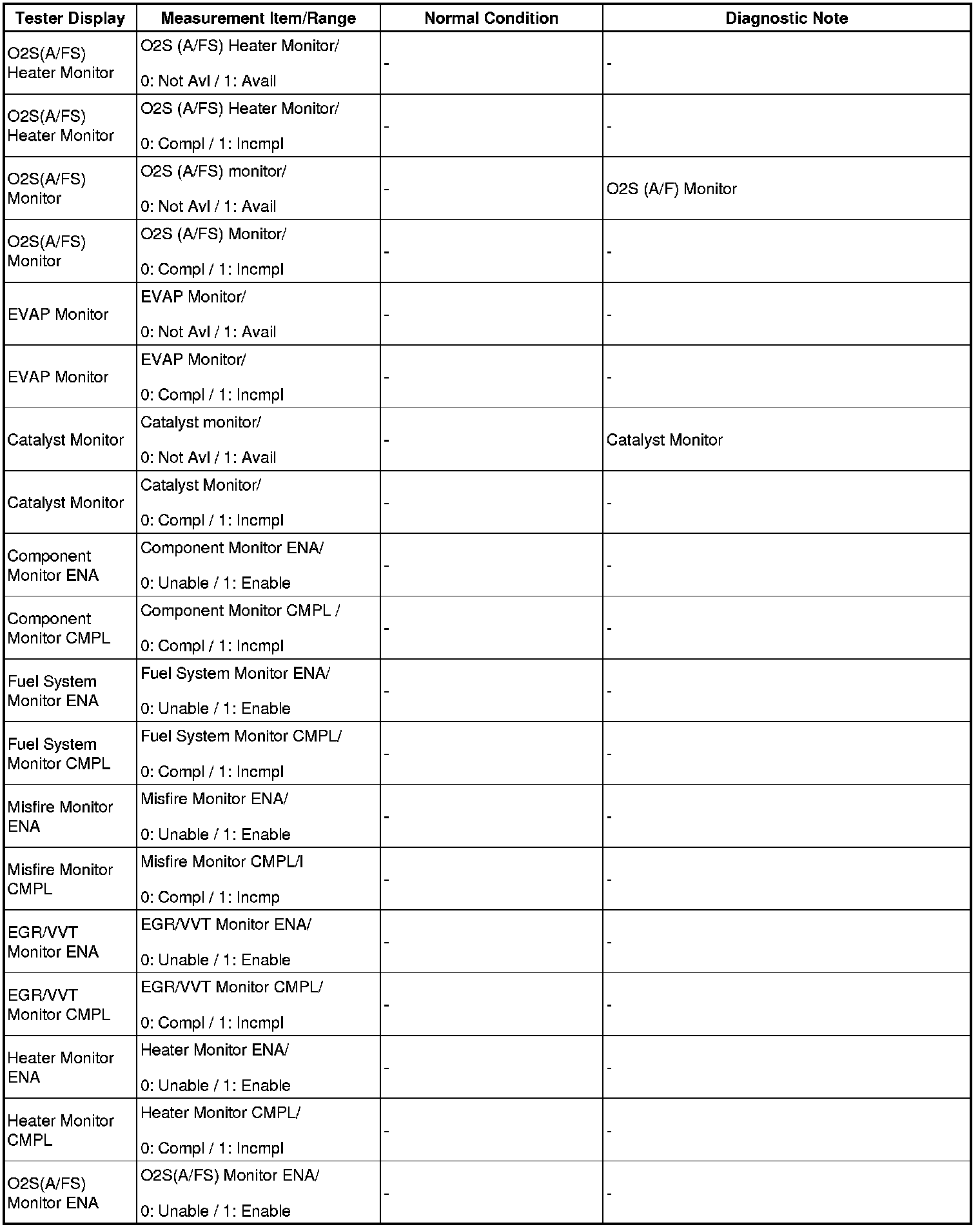 In the table below, the values listed under Normal Condition are reference only. Do not depend solely on these values when determining whether or not a part is faulty.