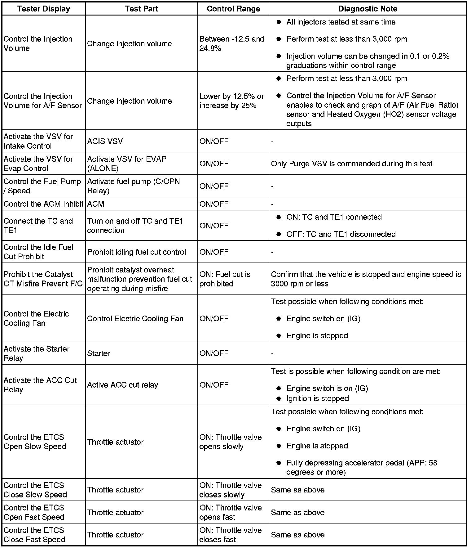 HINT: Performing an Active Test enables components including the relays, VSV (Vacuum Switching Valve) and actuators, to be operated without removing any parts. The Active Test can be performed with the Techstream. Performing an Active Test as the first step in troubleshooting is one method of shortening diagnostic time.