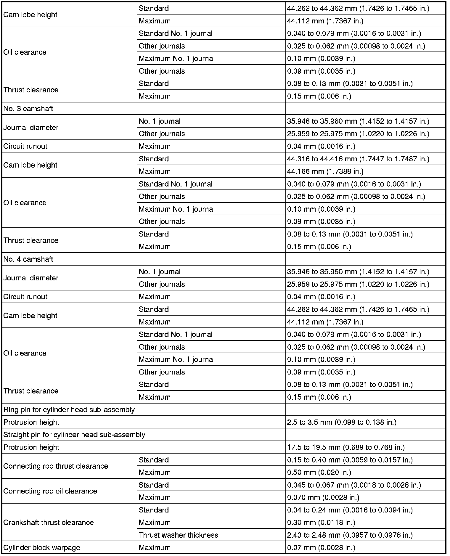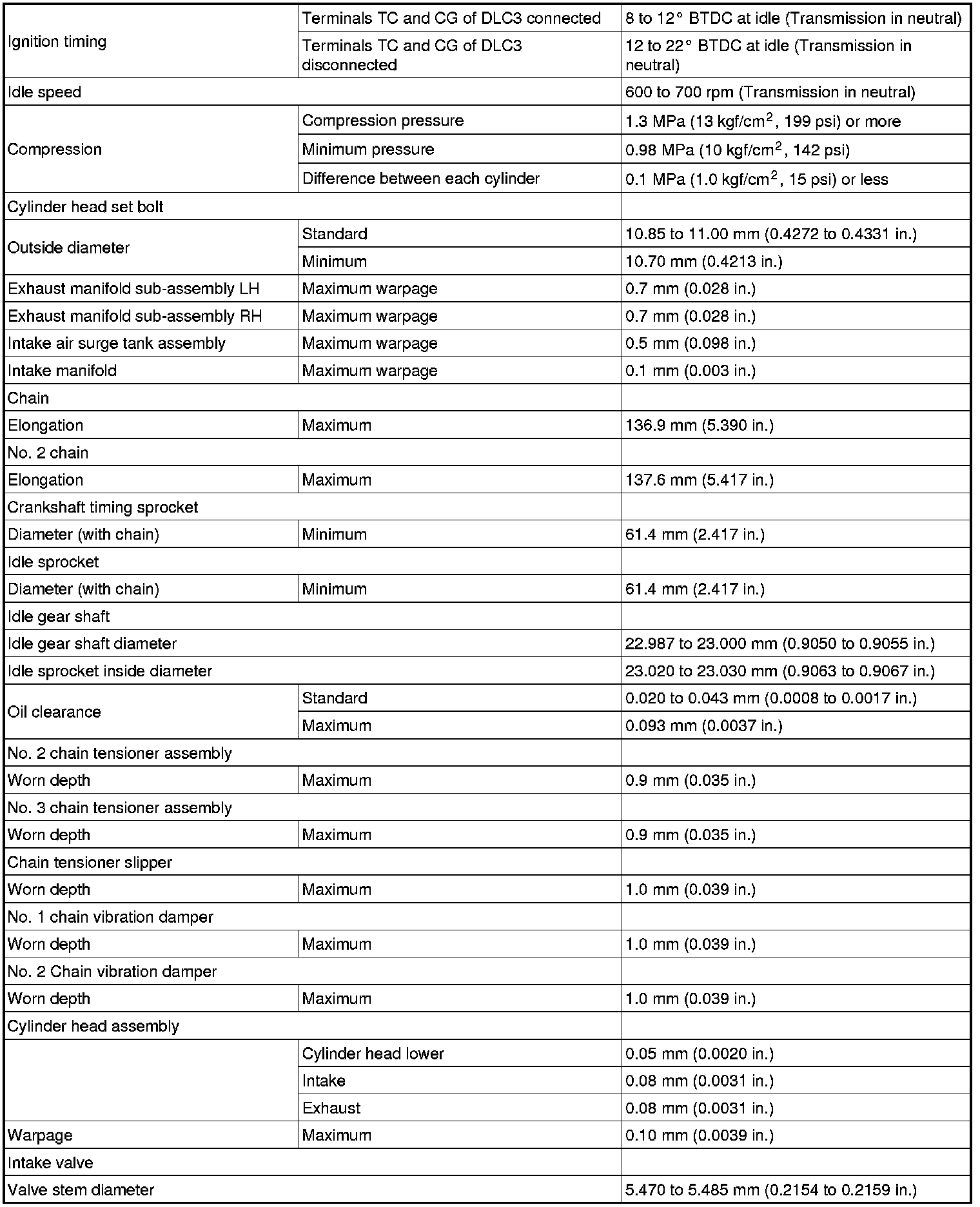 SERVICE SPECIFICATIONS: 2GR-FE ENGINE MECHANICAL: SERVICE DATA
