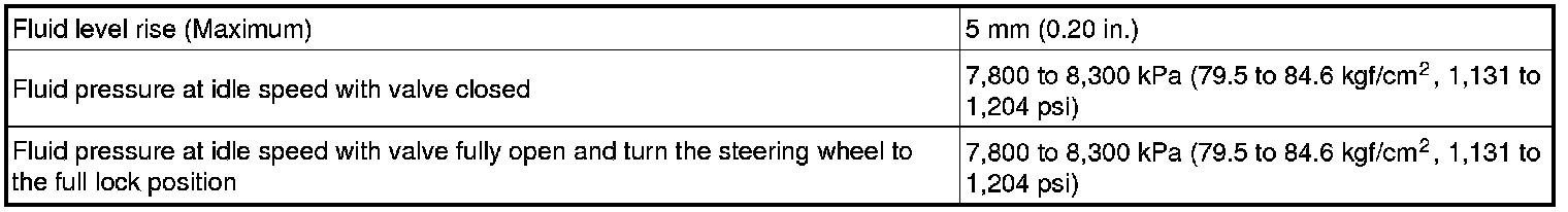 SERVICE SPECIFICATIONS: POWER STEERING: SERVICE DATA