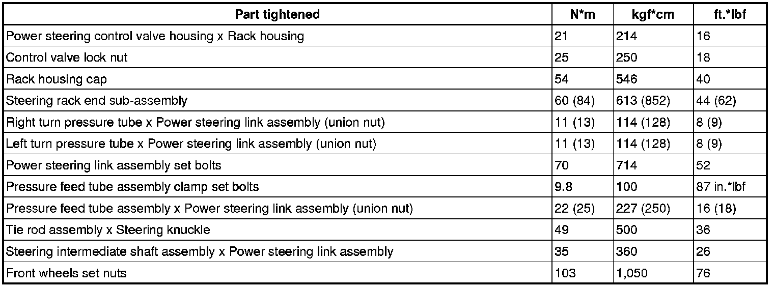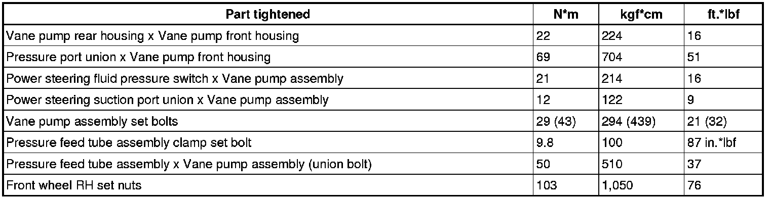SERVICE SPECIFICATIONS: POWER STEERING: TORQUE SPECIFICATIONS