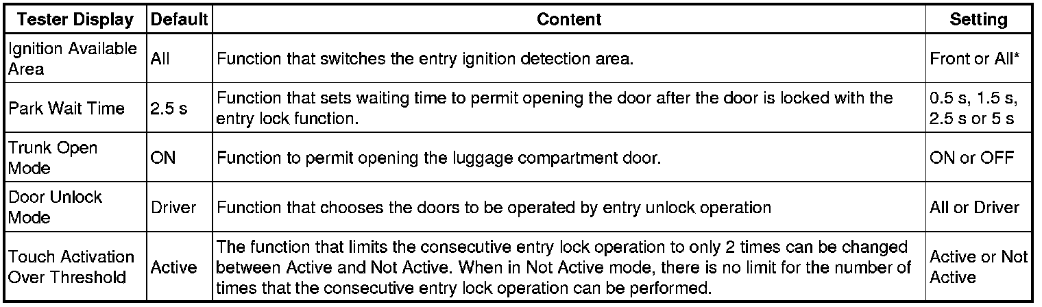 THEFT DETERRENT / KEYLESS ENTRY: SMART ACCESS SYSTEM WITH PUSH-BUTTON START (for Entry Function): CUSTOMIZE PARAMETERS