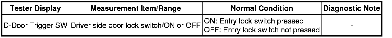 - Driver Side Door Entry Lock Function does not Operate