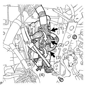 (b) Disengage the 2 claws and disconnect the 2 connectors (5) and (6) as shown in the illustration.