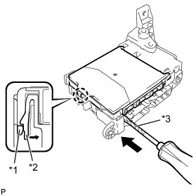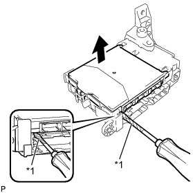 (c) Using the screwdriver, carefully raise the main body ECU up to the position where the connector becomes disengaged.