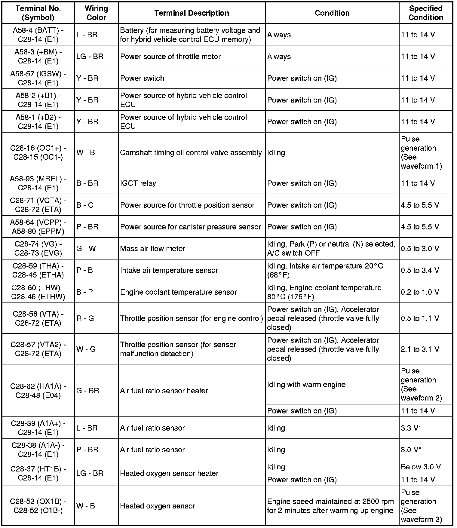 *: The ECM (included in the hybrid vehicle control ECU) terminal voltage is constant regardless of the output voltage from the sensor.