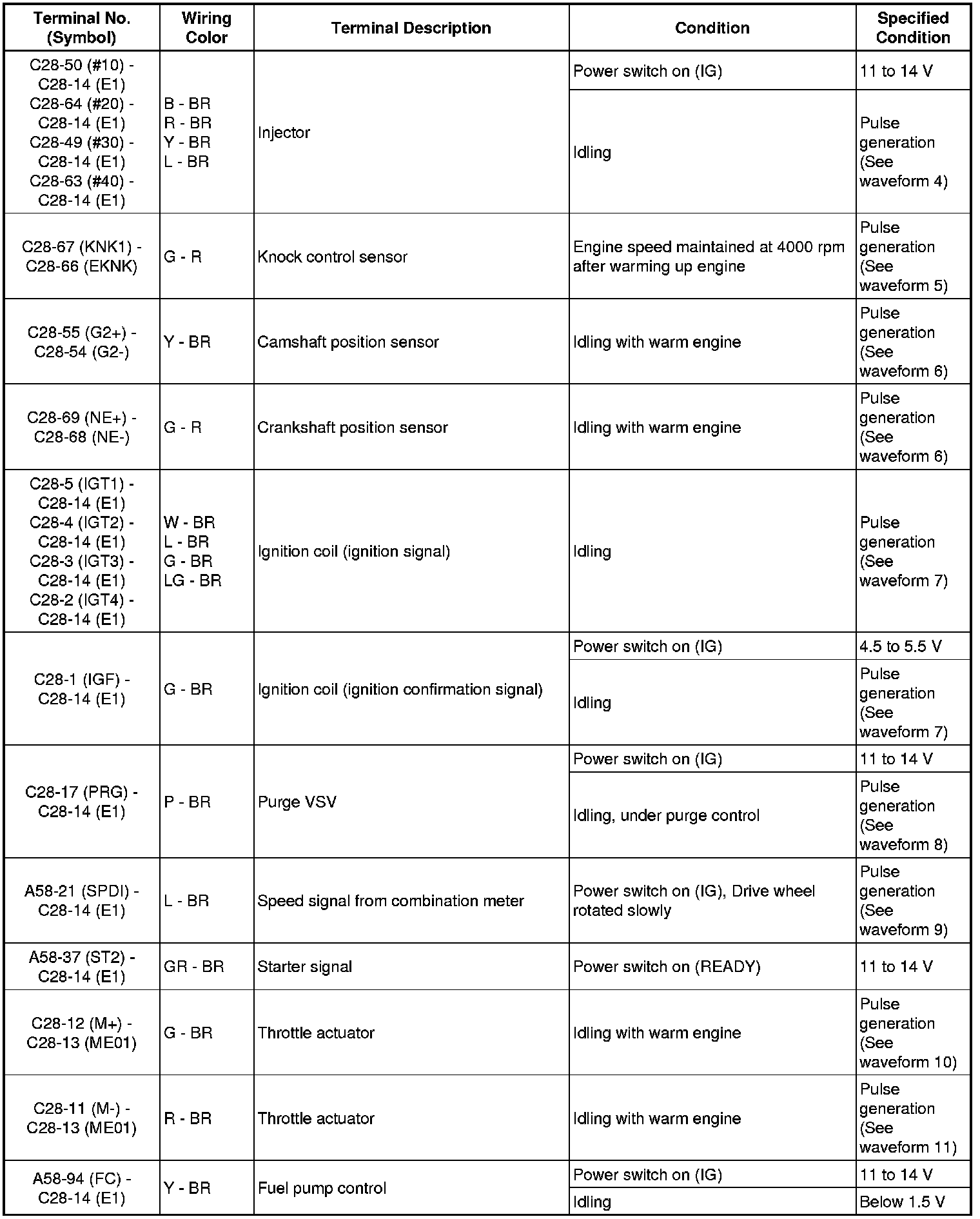 Injector No. 1 (to No. 4) Injection Signal