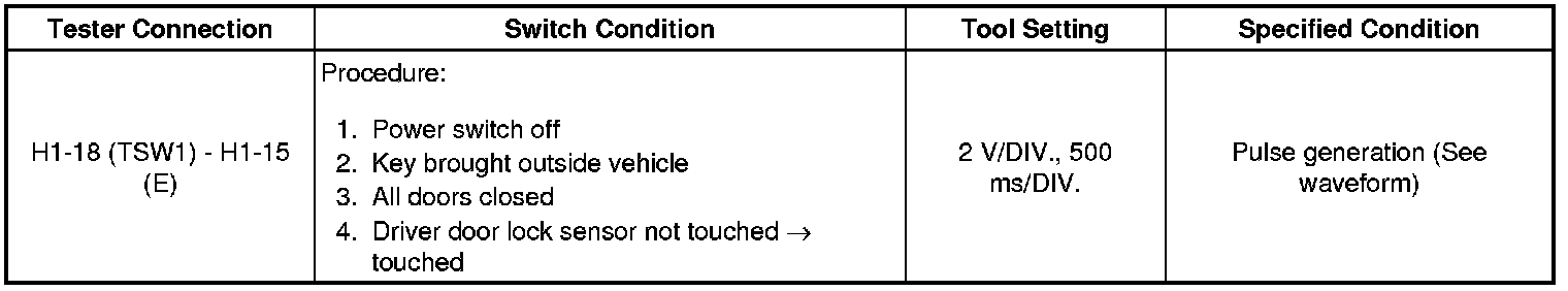 4. CHECK FRONT DOOR OUTSIDE HANDLE ASSEMBLY (FOR DRIVER DOOR) (DRIVER DOOR LOCK SENSOR SIGNAL INPUT)