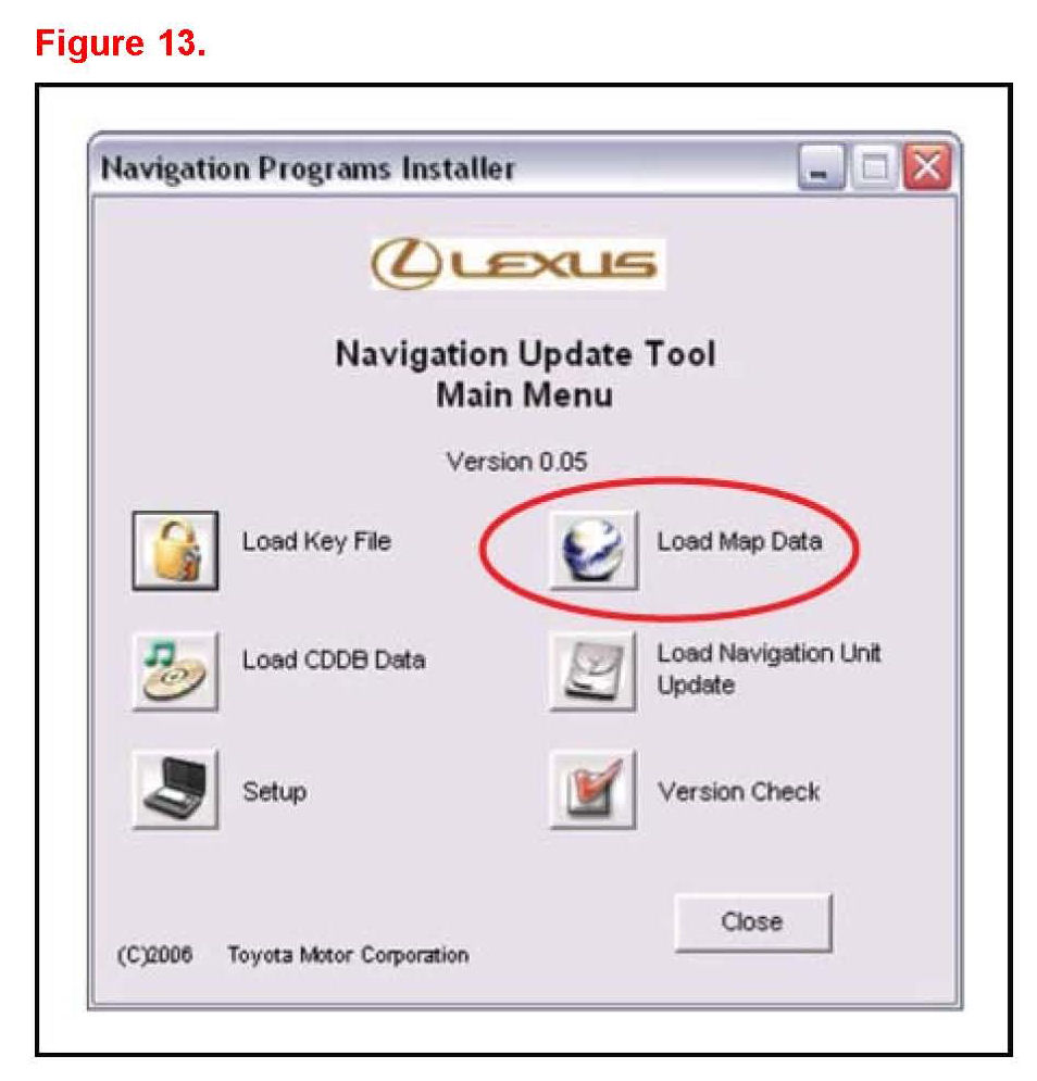 2. Select Load Map Data on the Navigation Update Tool Main Menu.