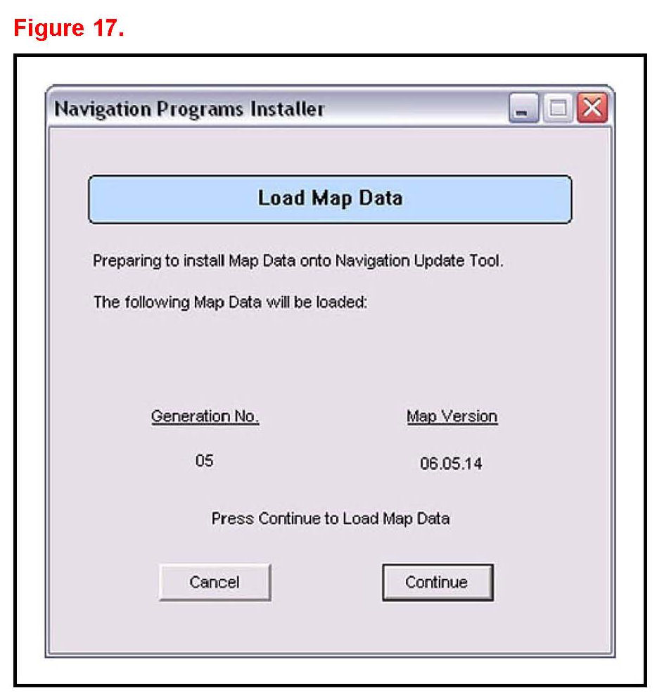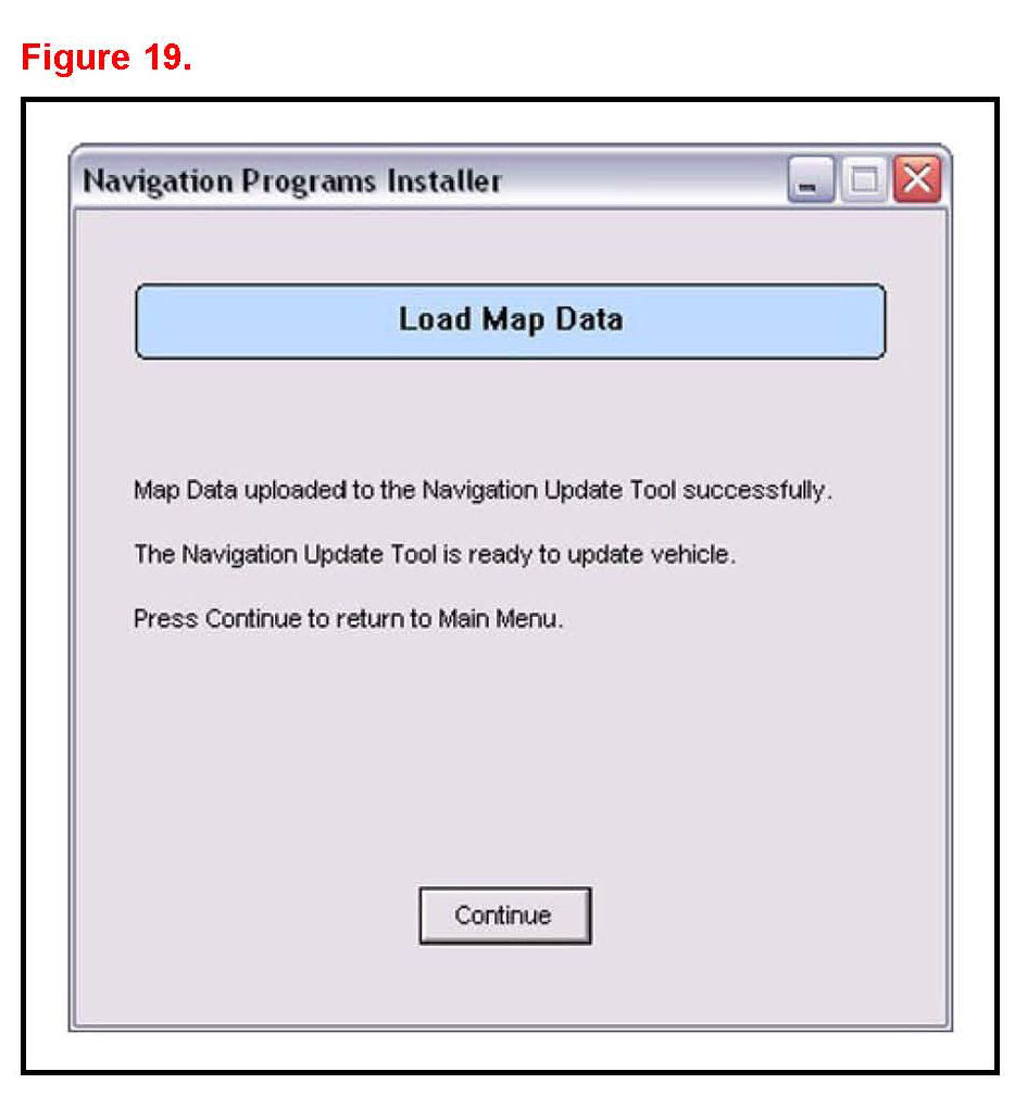 7. Click Continue to load Map Data onto the Navigation Update Tool.