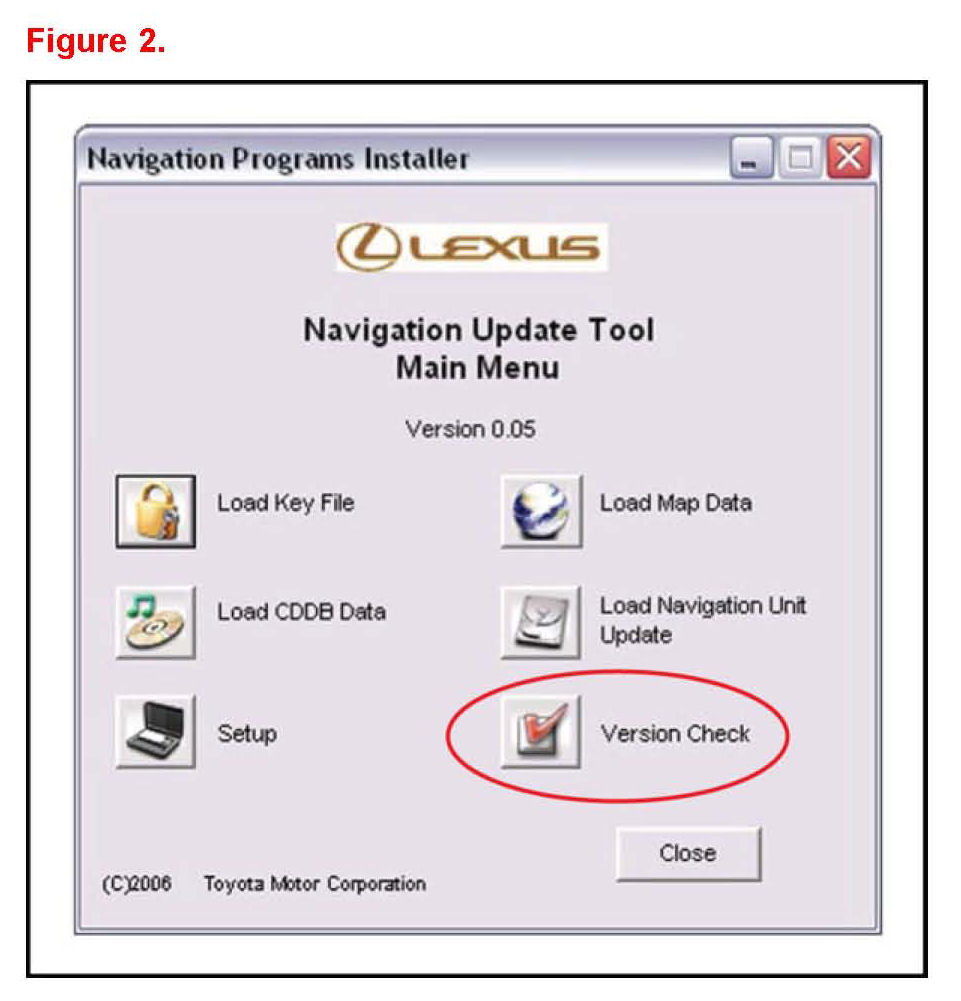 2. Click Version Check on the Navigation Update Tool Main Menu.