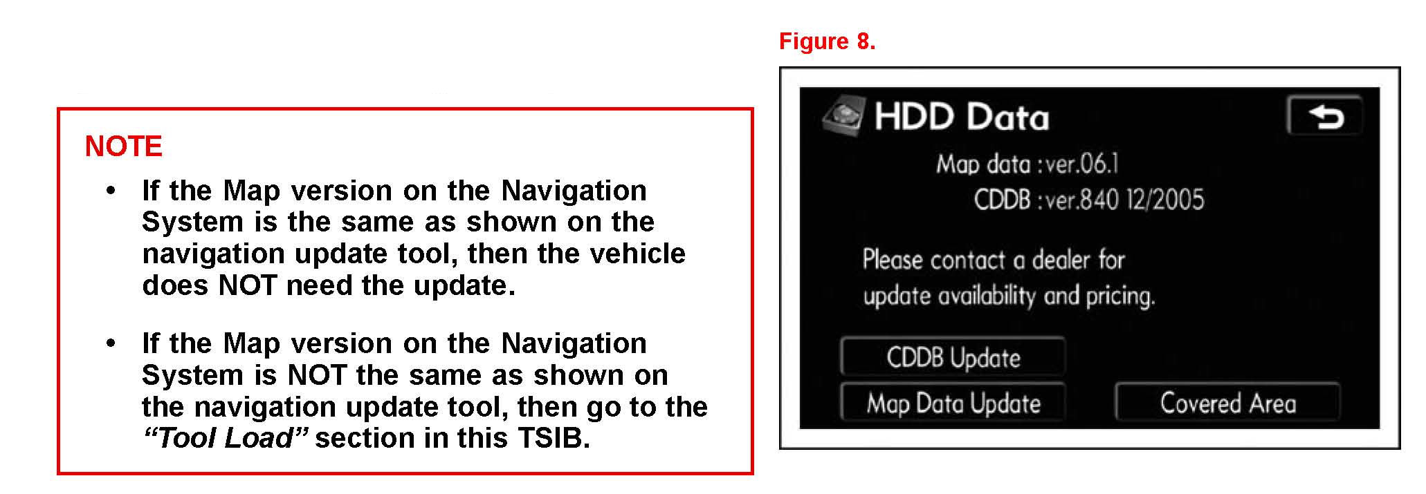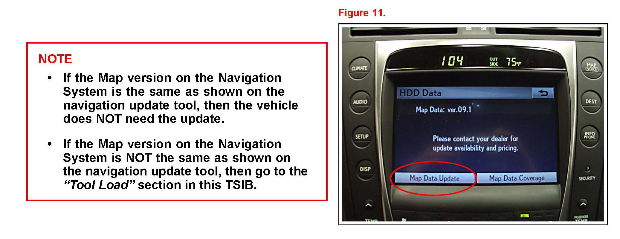 5. Compare the Map Data version on the Navigation System to that on the Navigation Update Tool.