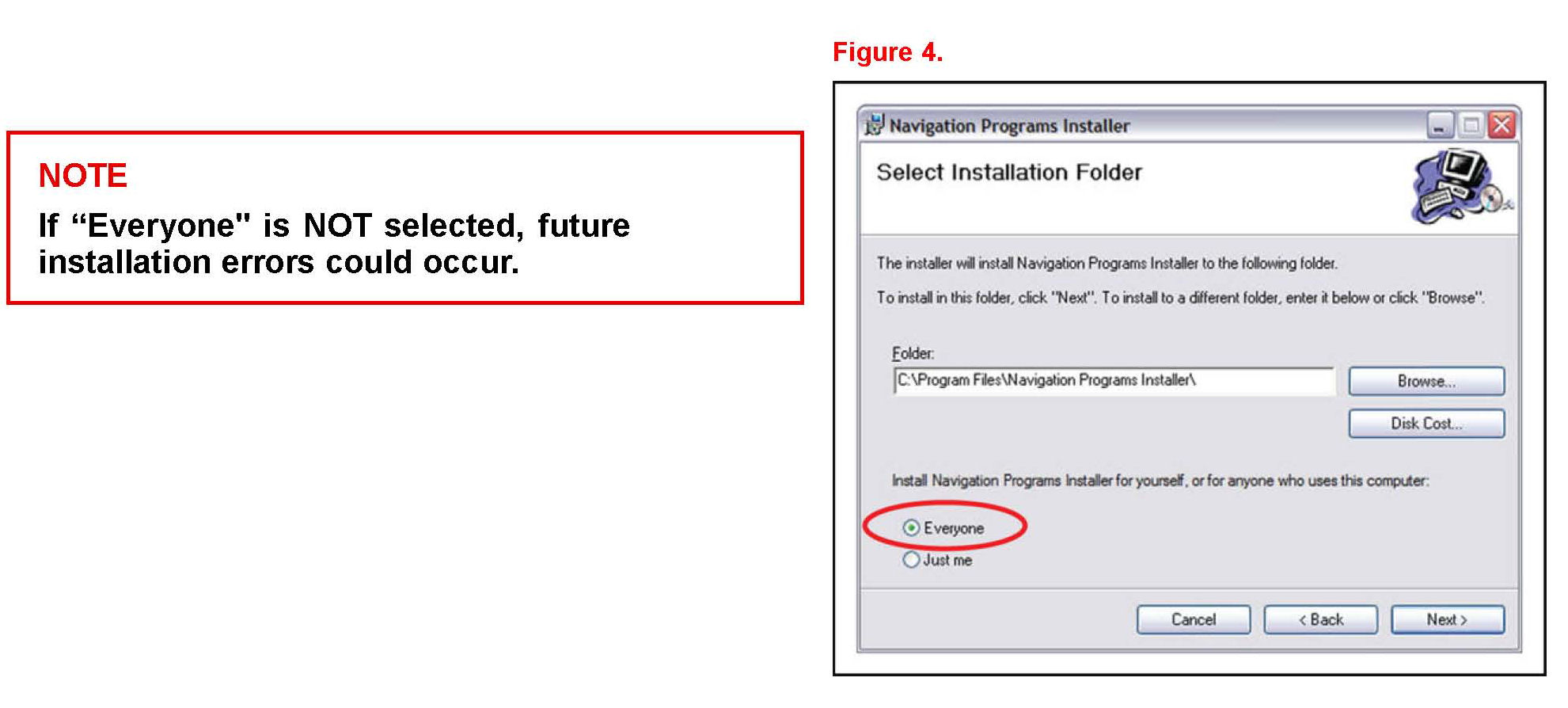 If "Everyone" is NOT selected, future installation errors could occur.
