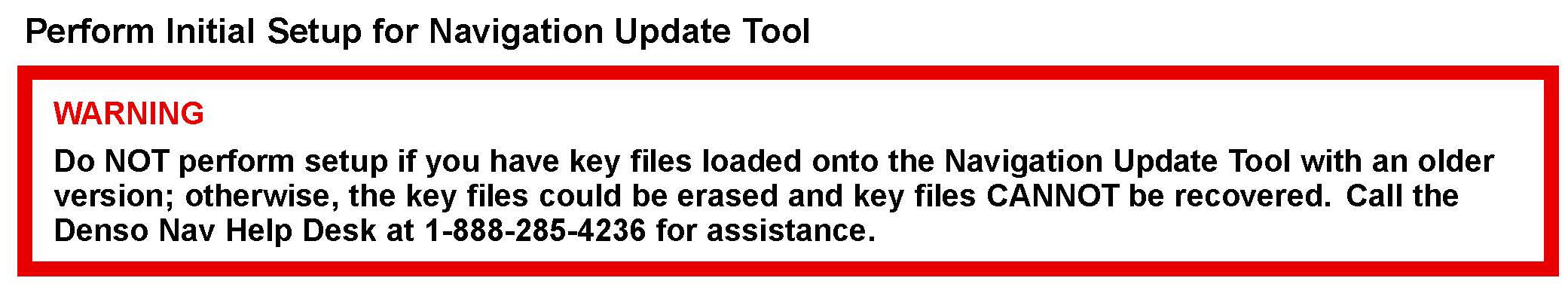 Setup ONLY needs to be completed once for each Navigation Update Tool.