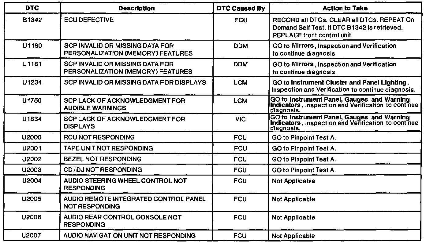 Front Control Unit Module Diagnostic Trouble Codes Index