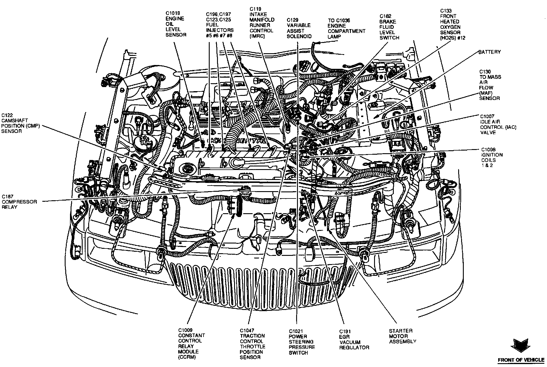 The Constant Control Relay Module is located at the center front of the engine compartment, on upper radiator support.
