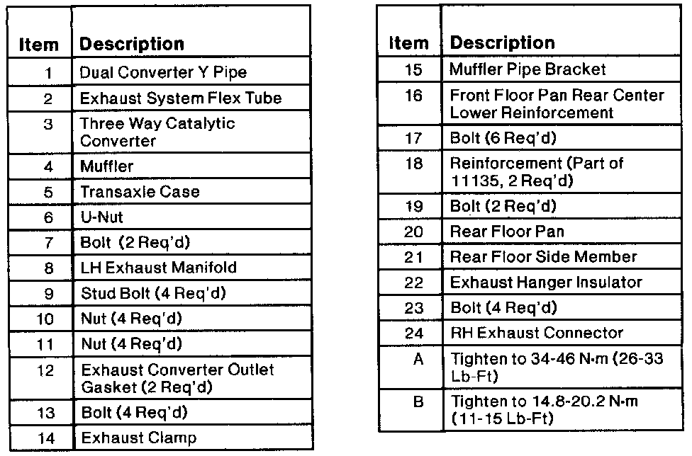 5. Align exhaust system to specification. Starting at front of system, tighten all nuts and bolts to 34-36 Nm (26-33 lb ft).