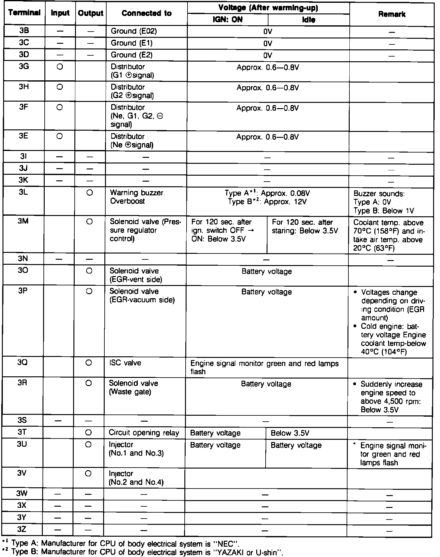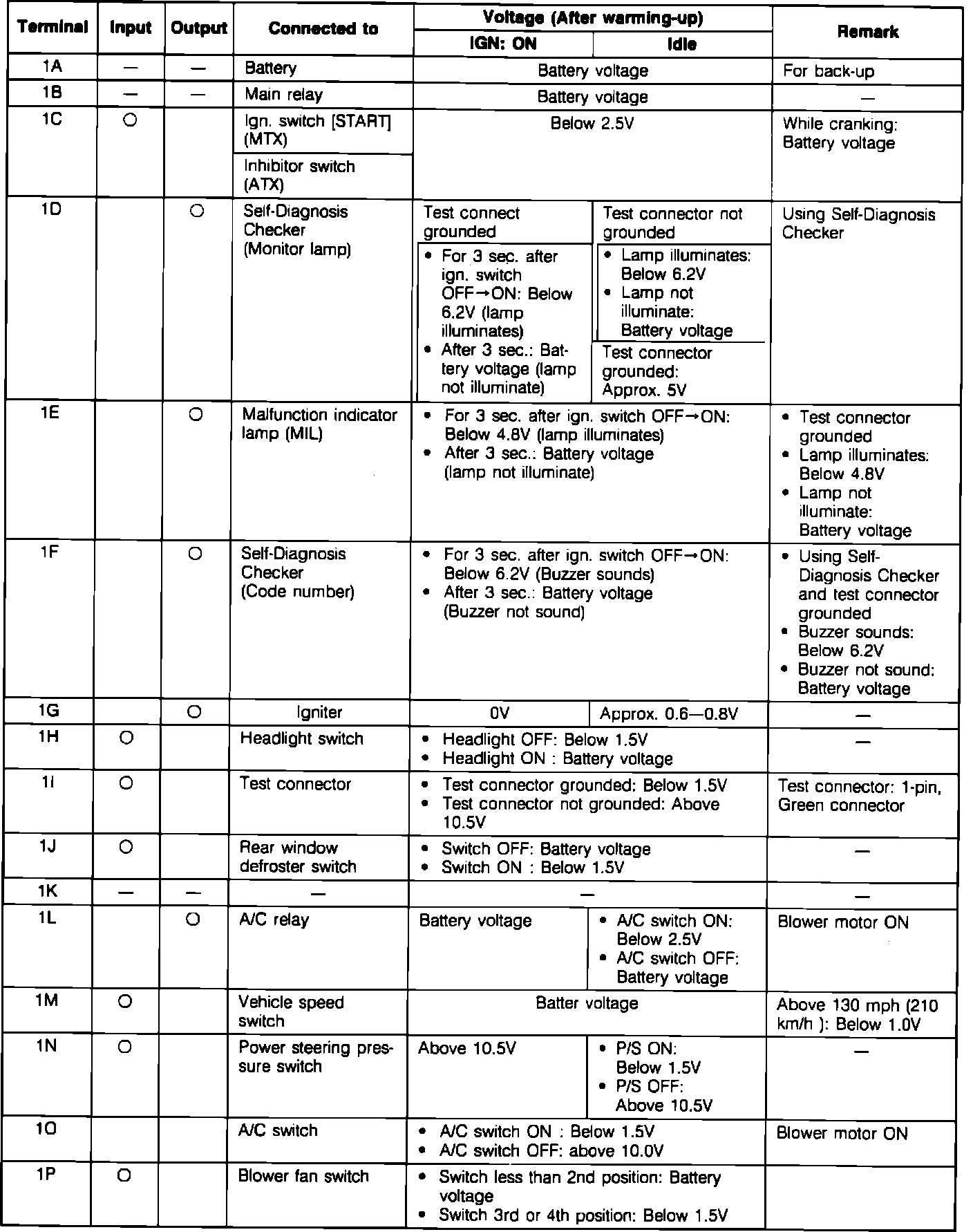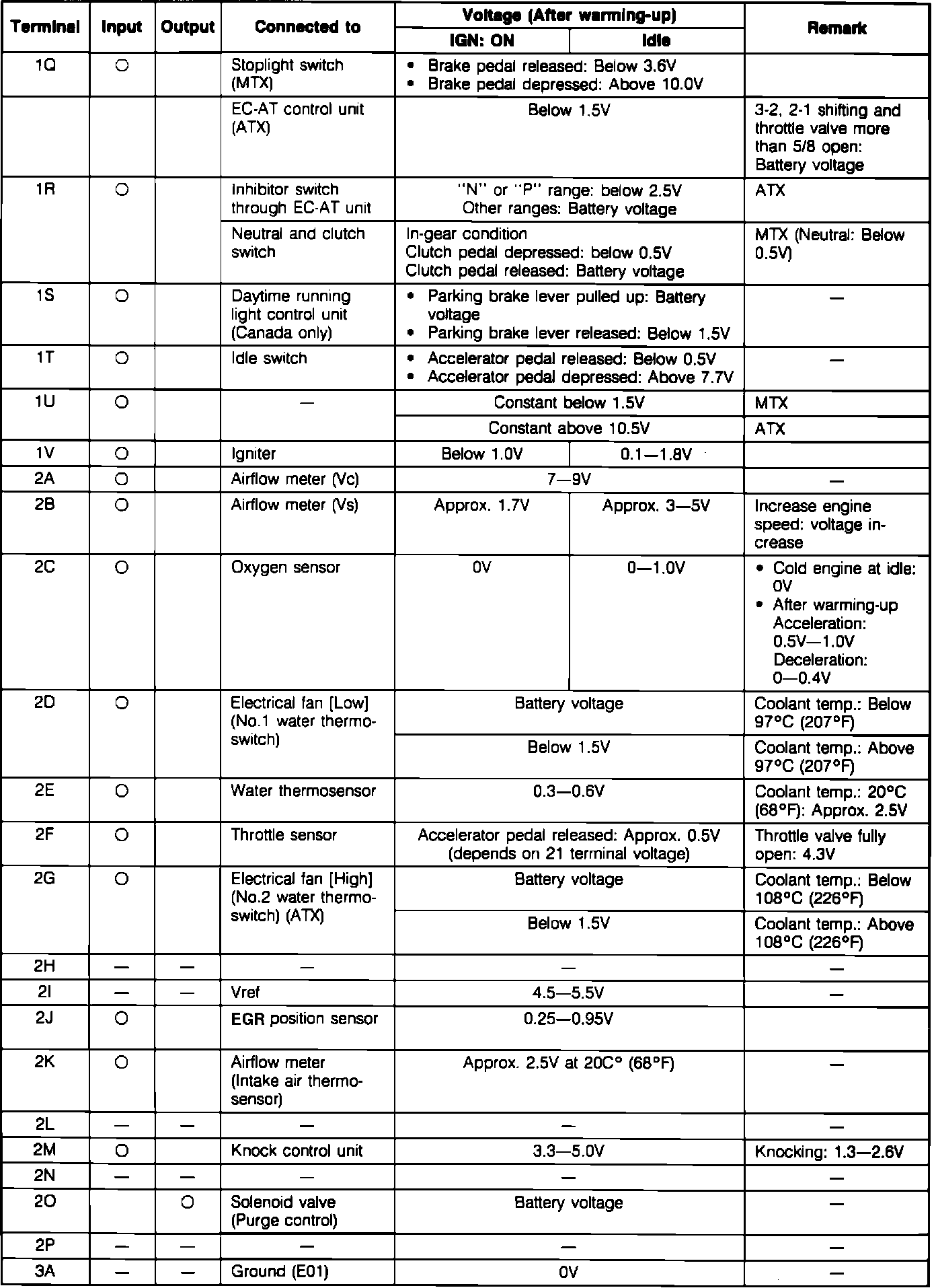 2. Before replacing an ECU, check components, wiring harnesses and terminal contacts if terminal voltage readings are incorrect. Repair as needed and recheck voltage readings.