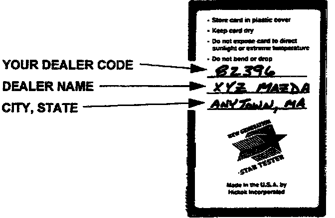 Identify your card by using ball-point pen or permanent marker and enter your dealer information as shown in the example: