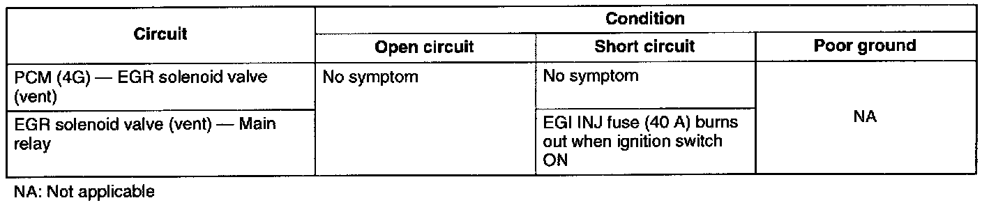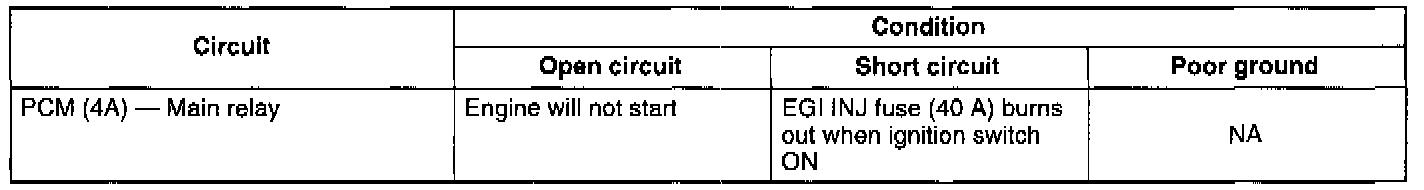 - If the circuit is shorted, the EGI INJ fuse (40 A) will burn out.