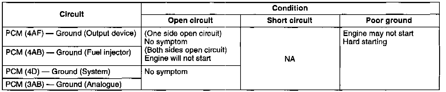 - If an output device or a fuel injector has an open ground circuit, no particular symptom will be produced. If a related output device and injectors both have open ground circuits, the engine will not start.