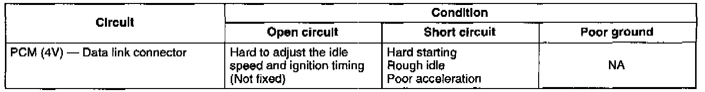 - If the circuit is shorted, the opening amount of the idle air control valve will not change, causing hard starting and rough idle. The ignition timing will be fixed, causing lack of power and poor acceleration.