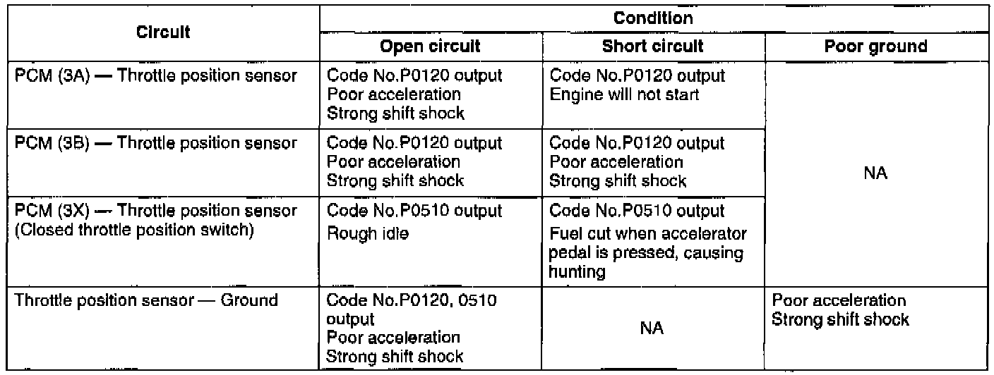 - If the throttle position sensor is not properly adjusted or the throttle position sensor system fails, poor acceleration or shift shock will result.