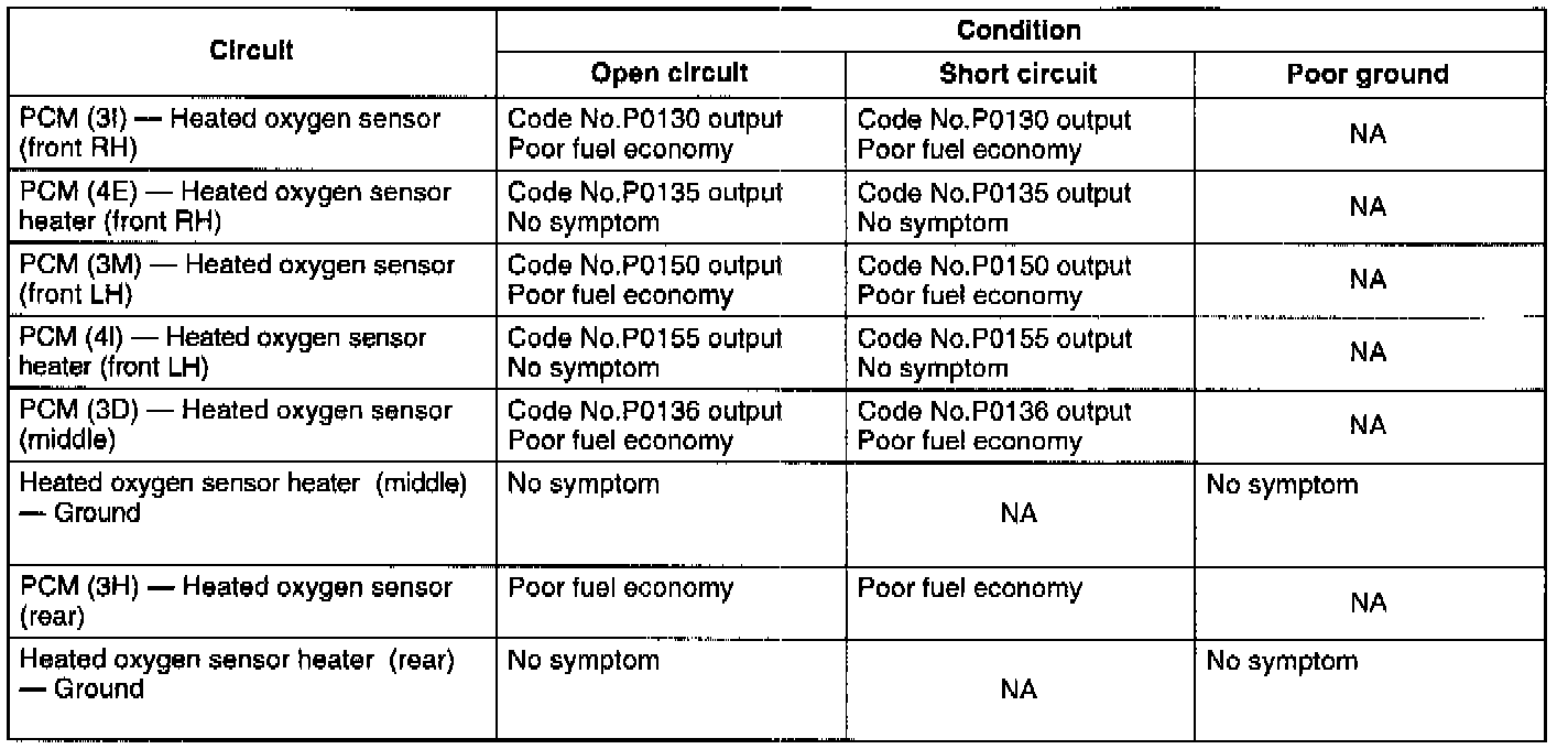 - If the heated oxygen sensor signal remain unchanged for approximately 40 seconds in feedback zone, diagnostic trouble codes No.P0150 (left bank sensor) and/or P0130 (right bank sensor) is output.