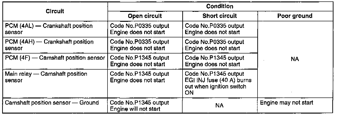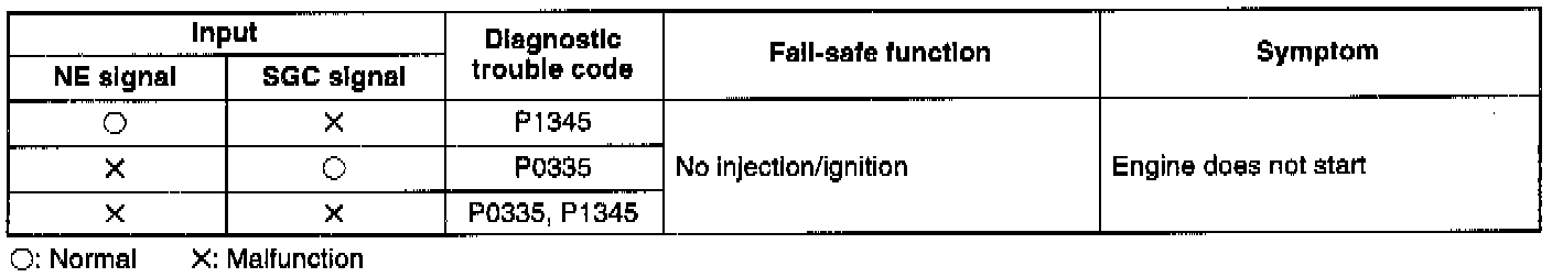 - If the NE signal circuit has an open or short, diagnostic trouble code No.P0335 is output.
