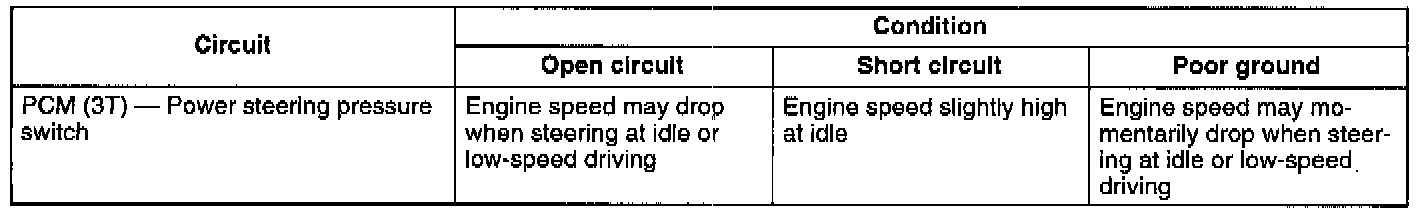- An open circuit can cause a momentary drop in engine speed when steering at idle or low-speed driving.