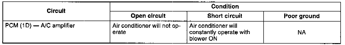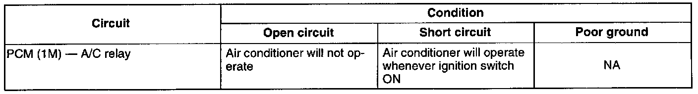 - If the circuit is shorted, the air conditioner will constantly operate when the ignition switch is ON.