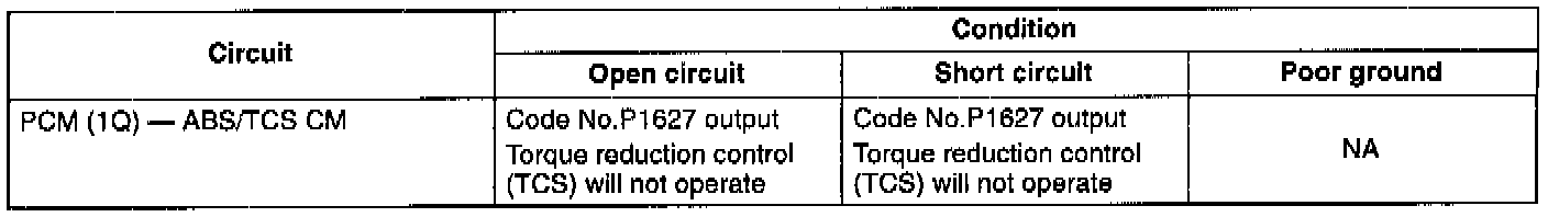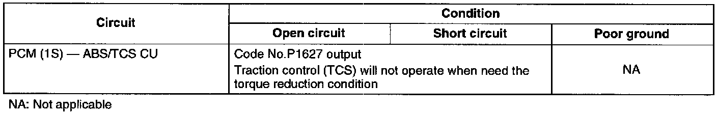 - If a malfunction occurs in the torque reduction request signal, the traction control (TCS) is inhibited and TCS does not operate.