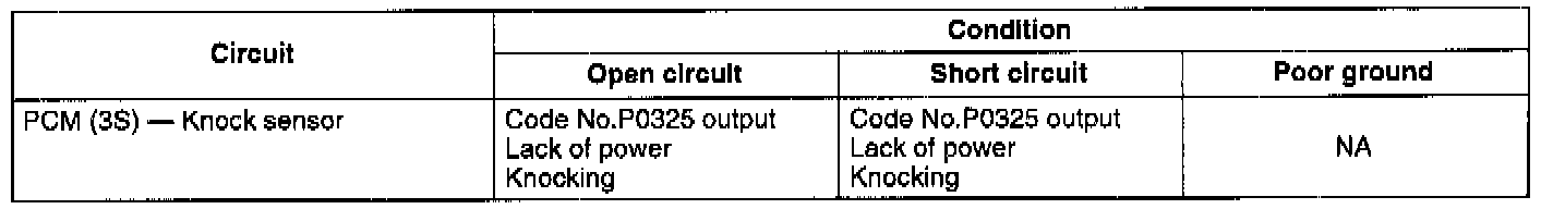 - If the knock sensor or circuit has an open or short, diagnostic trouble code No. P0325 is output.