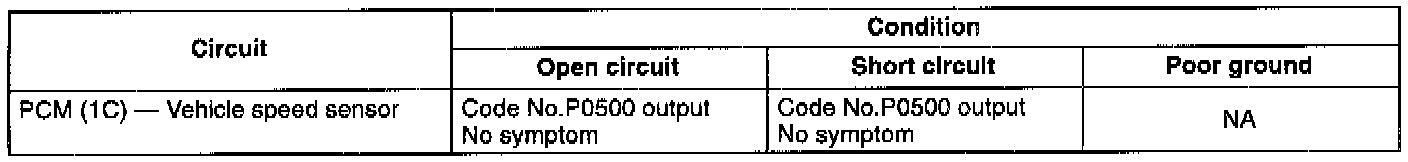 - If the vehicle speed sensor or circuit has an open or short, diagnostic trouble code No.PO5OO is output.