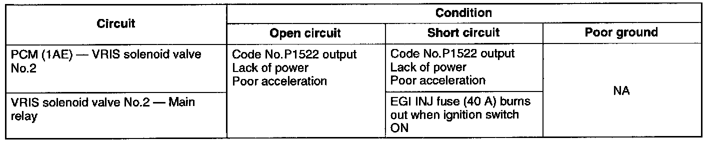 - If the solenoid valve or circuit has an open or short, Diagnostic trouble code No.P1522 is output.