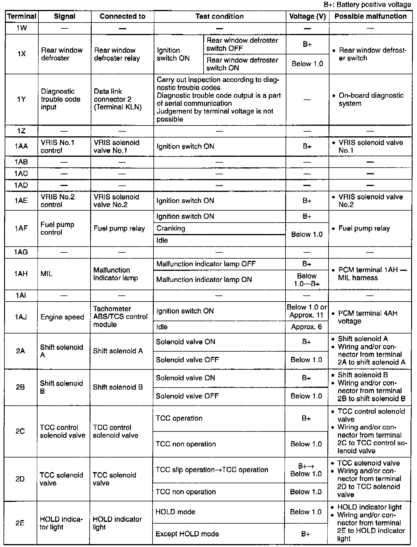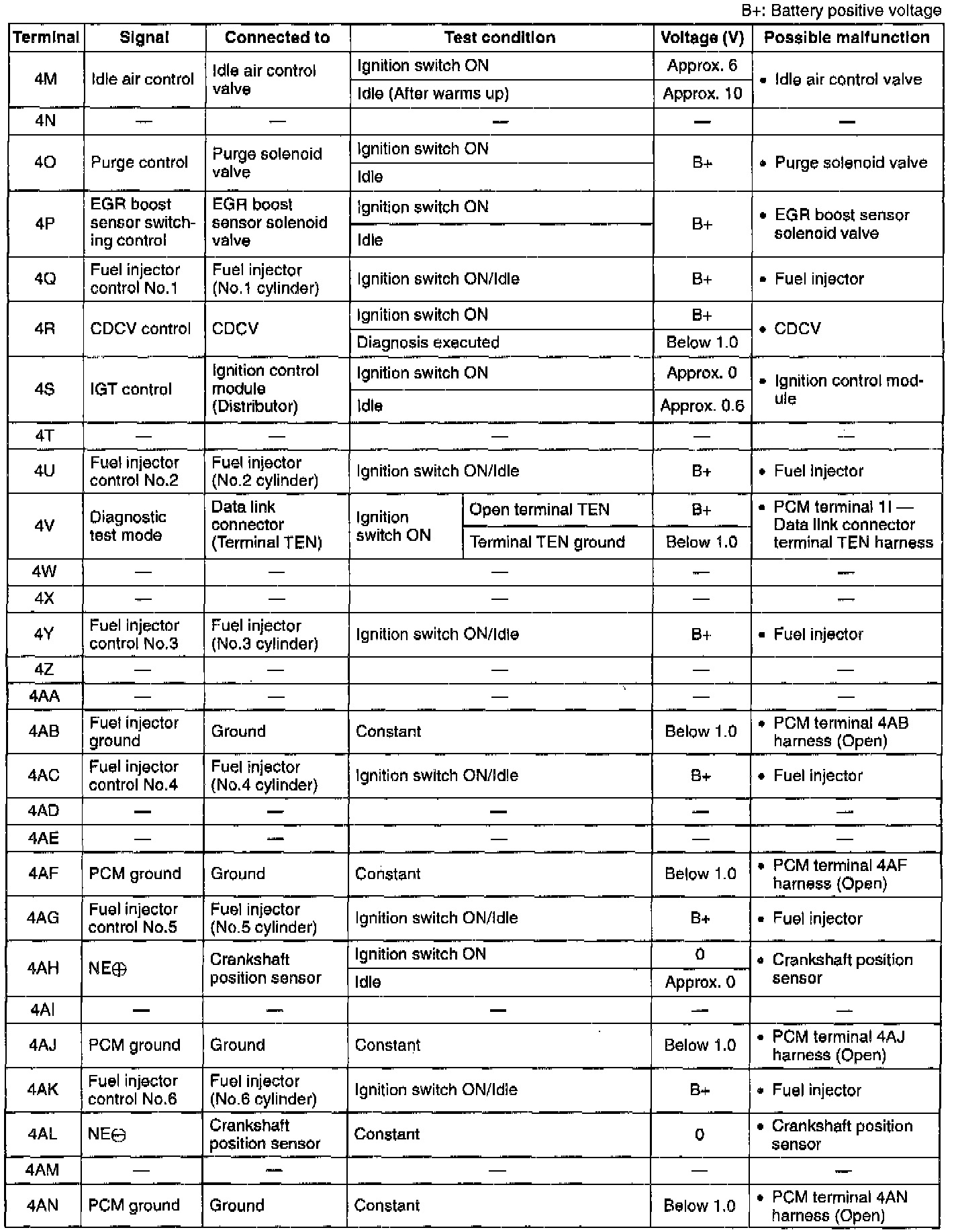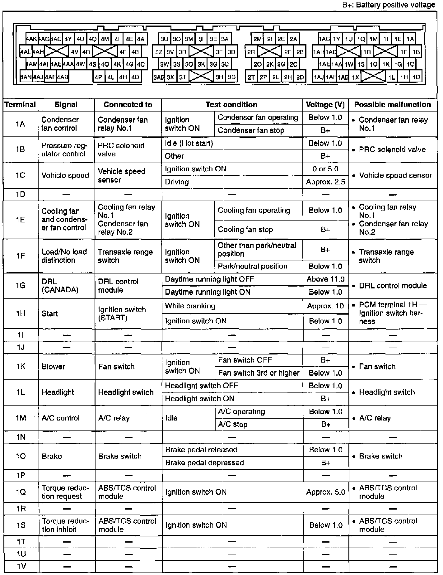 Pinout Values and Diagnostic Parameters