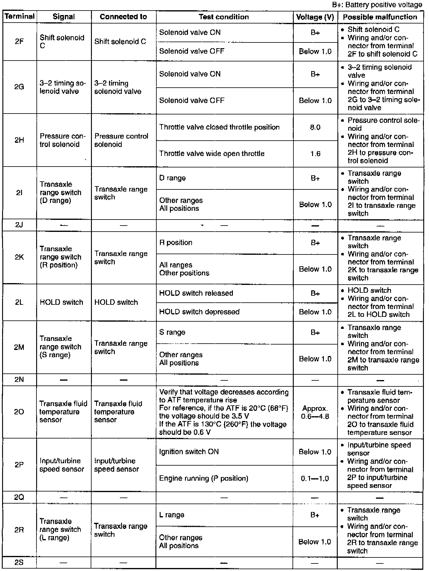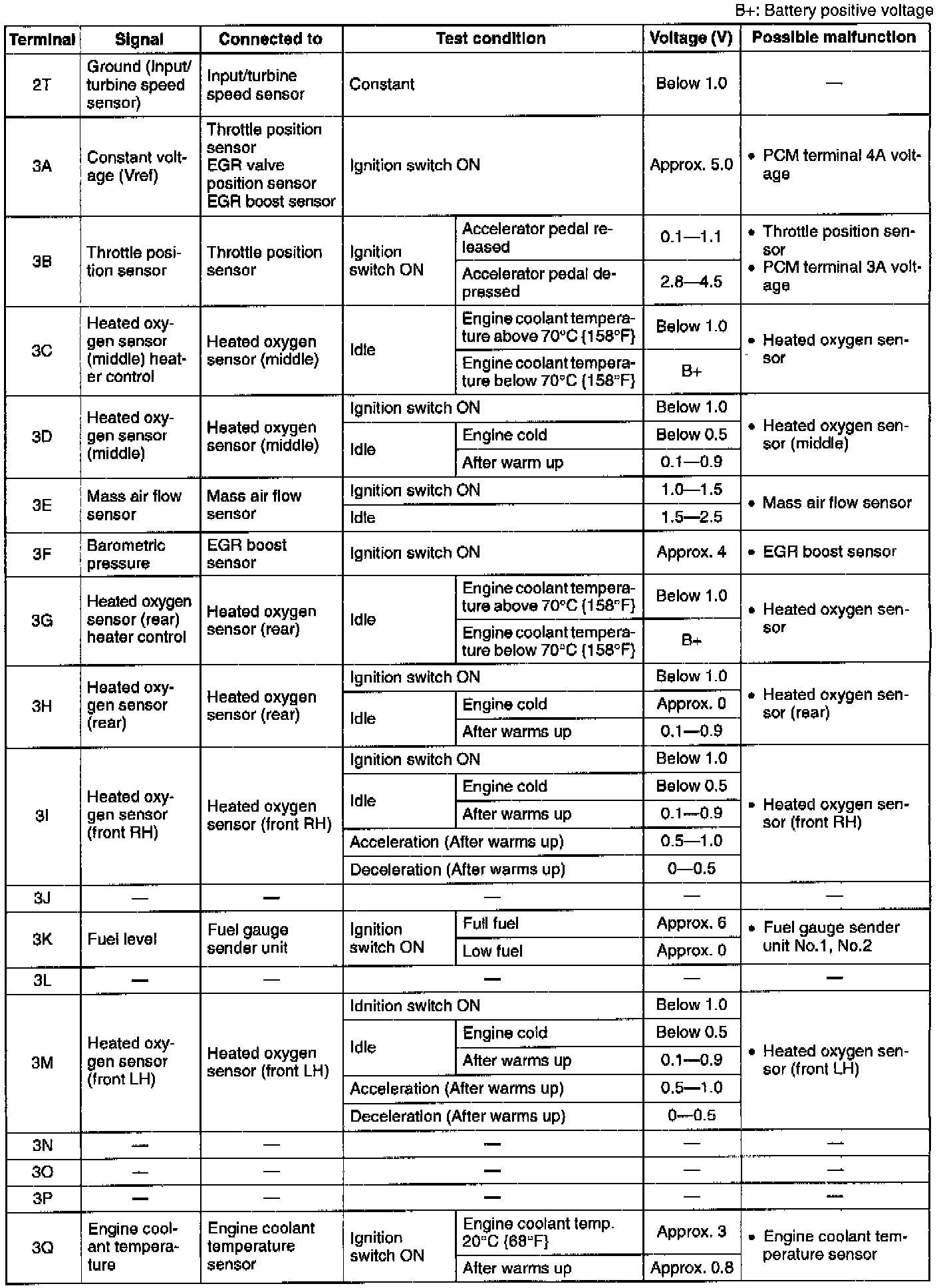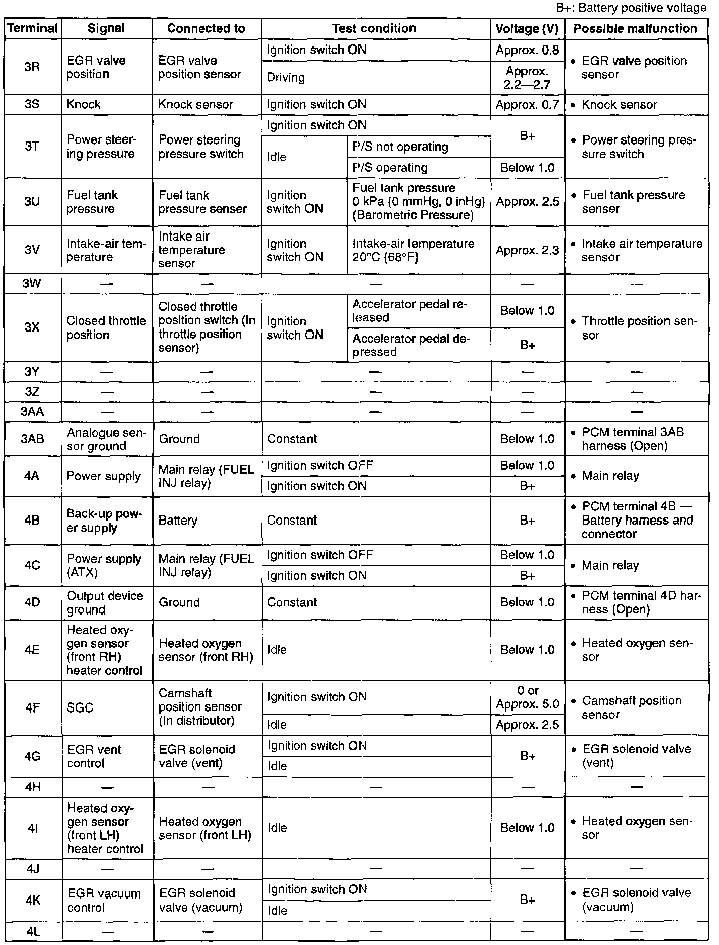 Pinout Values and Diagnostic Parameters