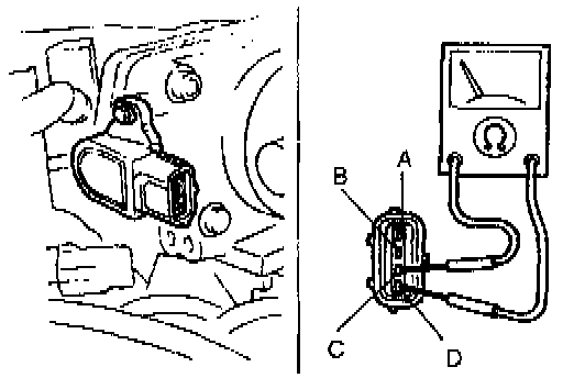 5. Adjust the continuity between the closed throttle position switch terminals C and D by using an ohmmeter.