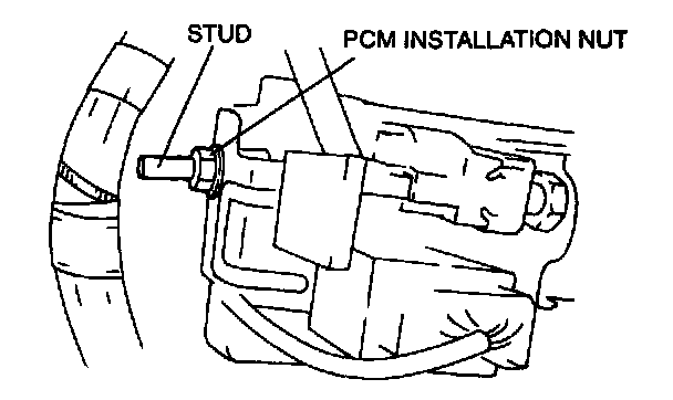 2. While pushing the harness, push the stay until it comes apart from the stud with the PCM installation nut.