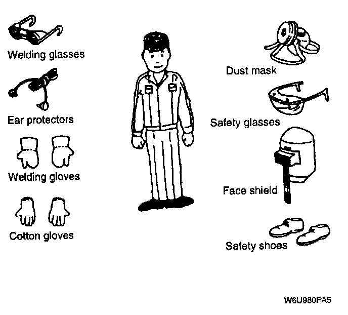 - Protective head covering and safety shoes should always be worn. Depending upon the nature of the work, glove, safety glasses, ear protector, face shield, etc., should also be used.