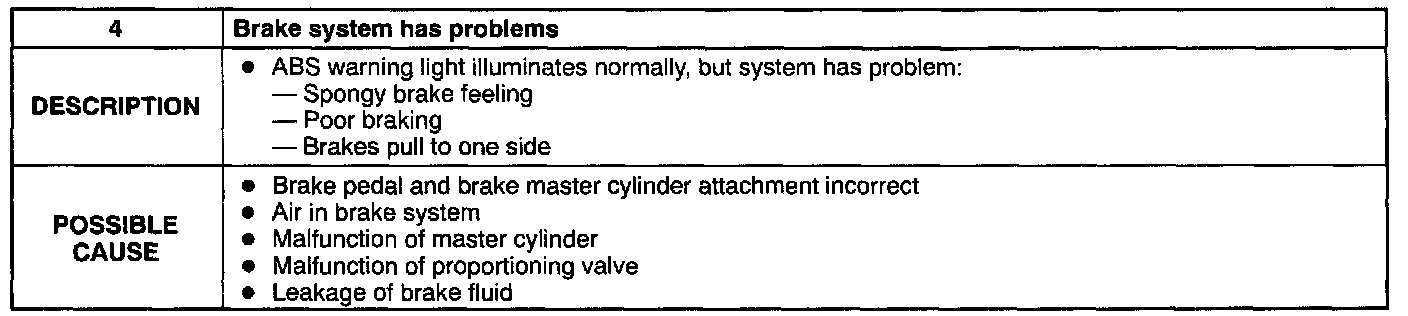 - The ABS warning light normally illuminates for 2 - 4 seconds after ignition switch is turned to ON.