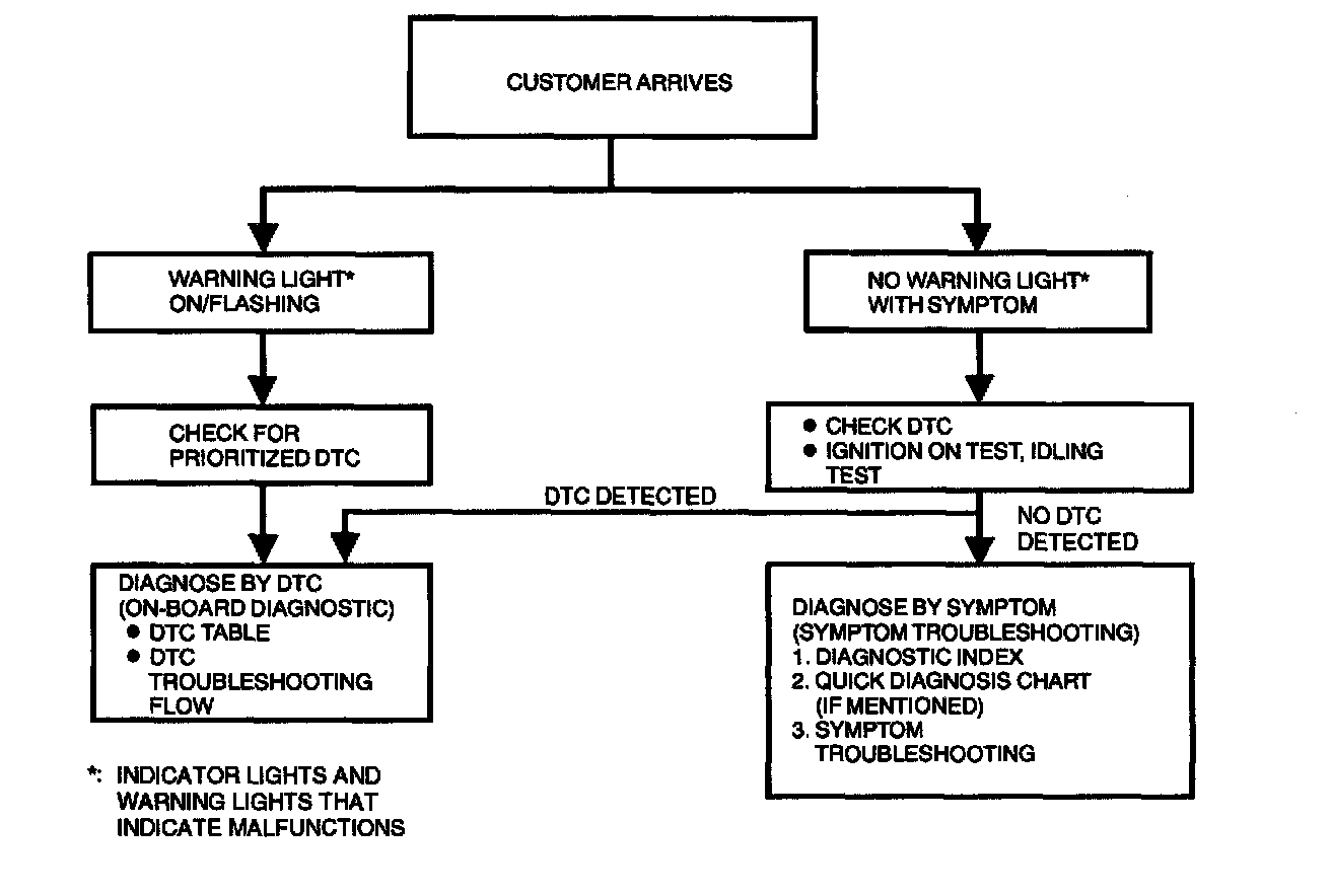 - The quick diagnosis chart lists diagnosis and inspection procedures to be performed specifically relating to the cause of the malfunction.