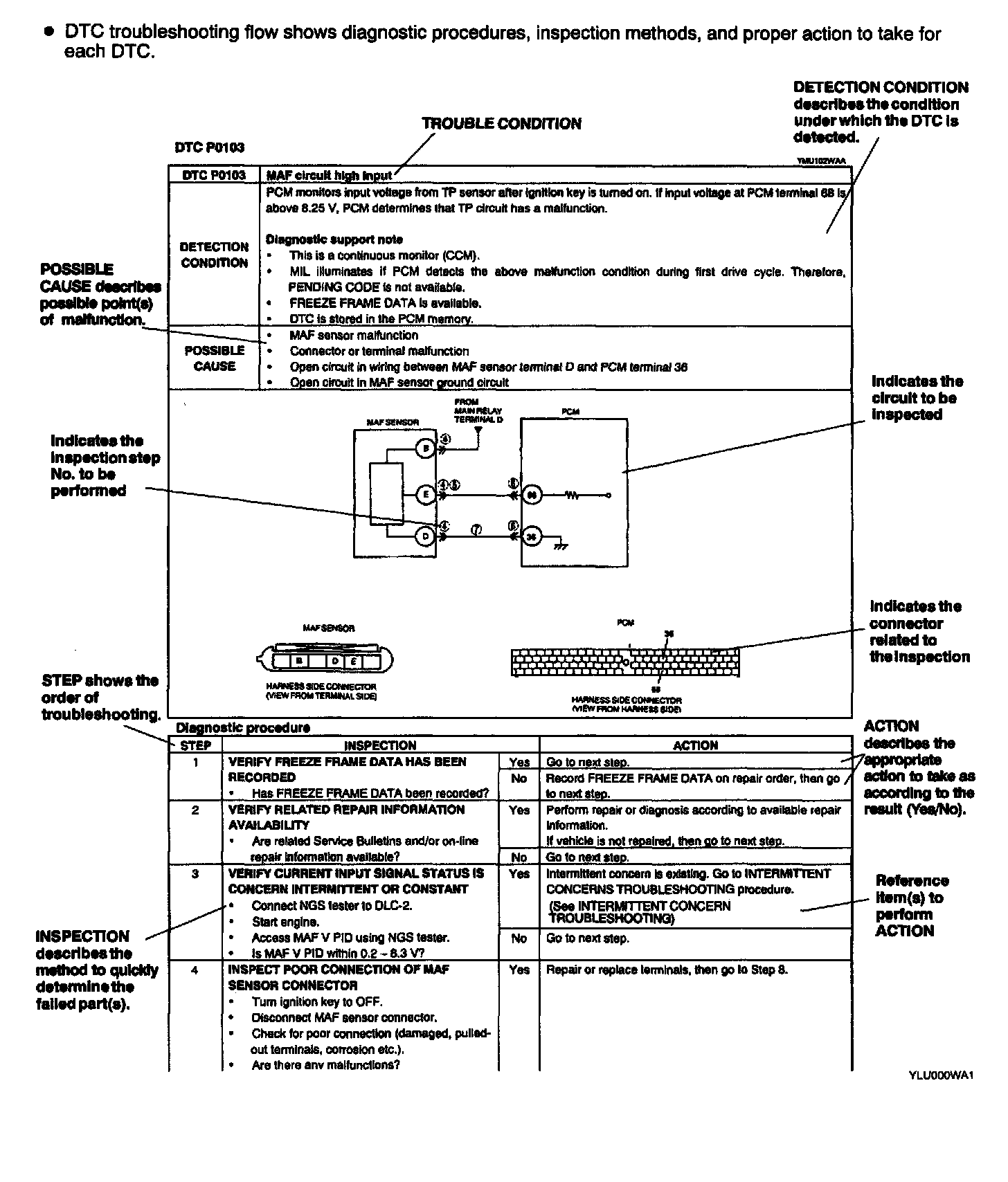 - Diagnostic trouble codes (DTCs) are important hints for repairing malfunctions that are difficult to simulate. Perform the specific DTC diagnostic inspection to quickly and accurately diagnose the malfunction.